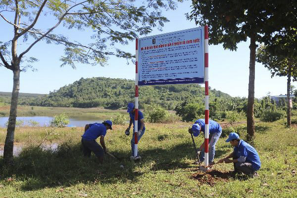 | Cắm pano tuyên truyền bảo vệ nguồn nước, một trong những hoạt động của chương trình “Nâng cao nhận thức BVMT các hồ chứa nước trên địa bàn tỉnh BR-VT”. |