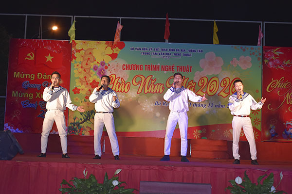 | Tốp ca nam Trung tâm Văn hóa - Nghệ thuật tỉnh biểu diễn tiết mục “Ra khơi mùa xuân”. |