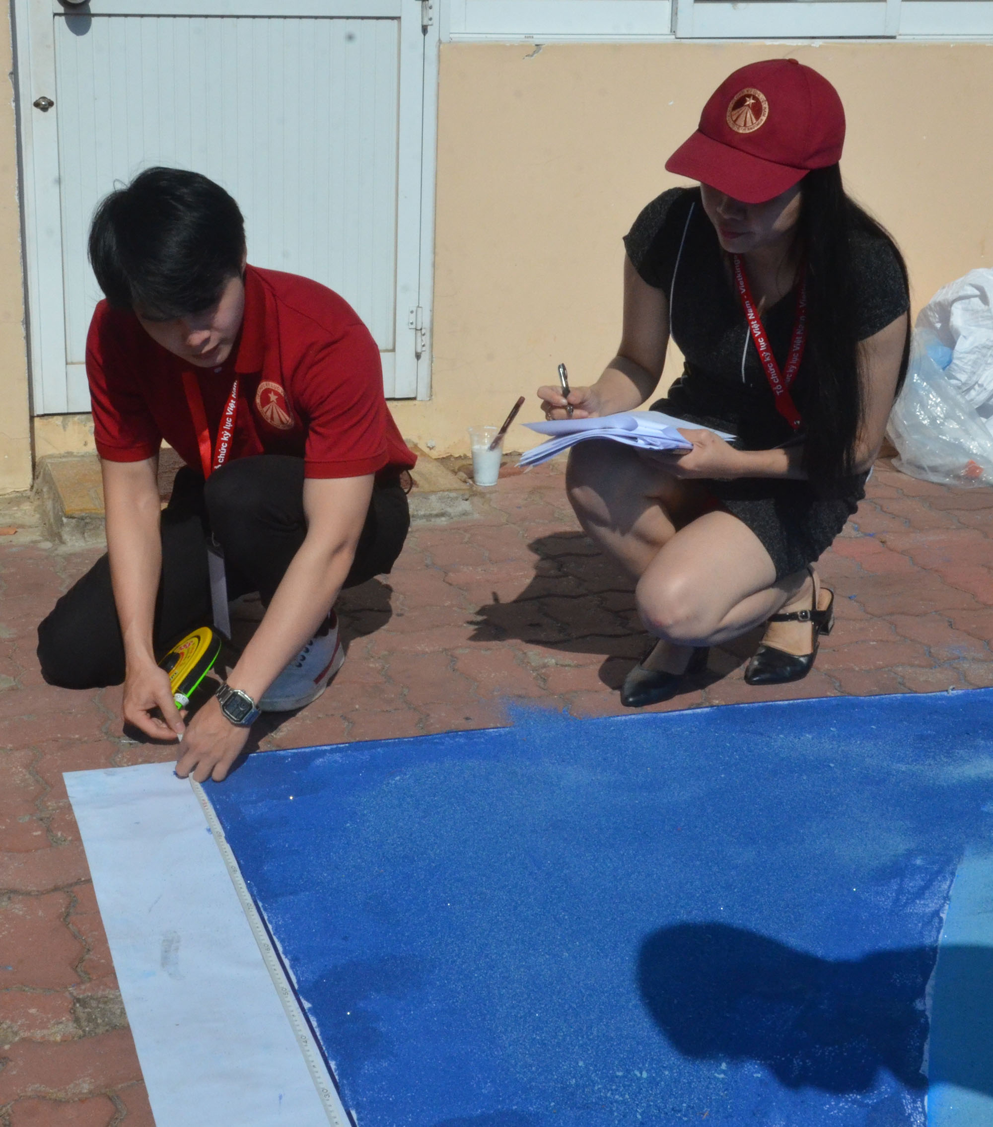 | Đại diện Tổ chức Kỷ lục Việt Nam VietKings tiến hành đo đạc và xác lập kỷ lục “Bức tranh bằng cát màu lớn nhất Việt Nam”. |