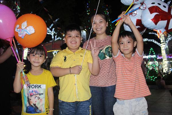 | Các em thiếu nhi hào hứng khi được đi chơi Noel tại Nhà thờ Chánh tòa Bà Rịa. Ảnh: MINH NHÂN |