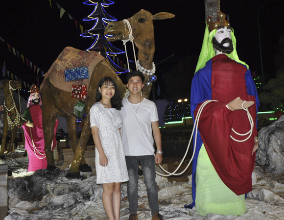 | Đôi bạn trẻ Lê Quốc Hòa và Nguyễn Thị Thúy Hằng cùng nhau dạo chơi, tham quan và chụp ảnh lưu niệm bên chú tuần lộc tại Giáo xứ Vinh Trung (xã Bình Trung, huyện Châu Đức). Ảnh: NGỌC BÍCH |