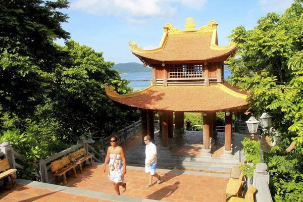 | Du khách nước ngoài viếng chùa Núi Một. |