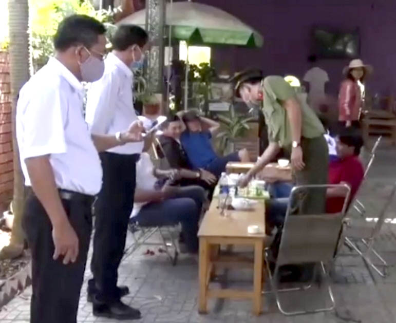 | Đoàn kiểm tra của UBND huyện Châu Đức kiểm tra, nhắc nhở chủ cơ sở kinh doanh và người dân tại quán cà phê trên địa bàn xã Nghĩa Thành về việc tuân thủ quy định phòng, chống dịch COVID-19. |