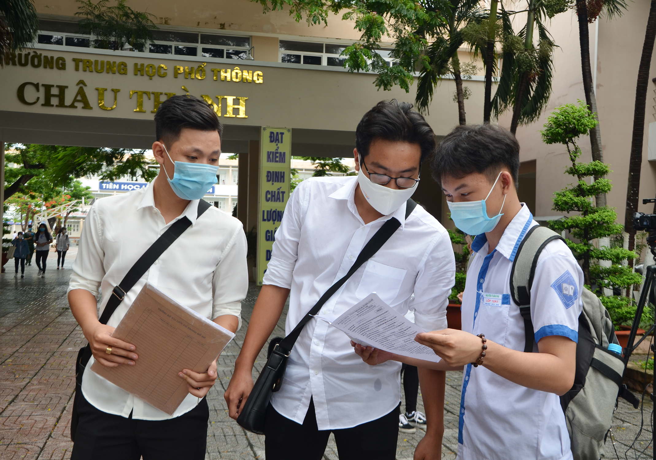 | Thí sinh tại điểm thi Trường THPT Châu Thành (TP. Bà Rịa) phấn khởi sau khi kết thúc bài thi sáng 10/8. Ảnh: PHI DŨNG |