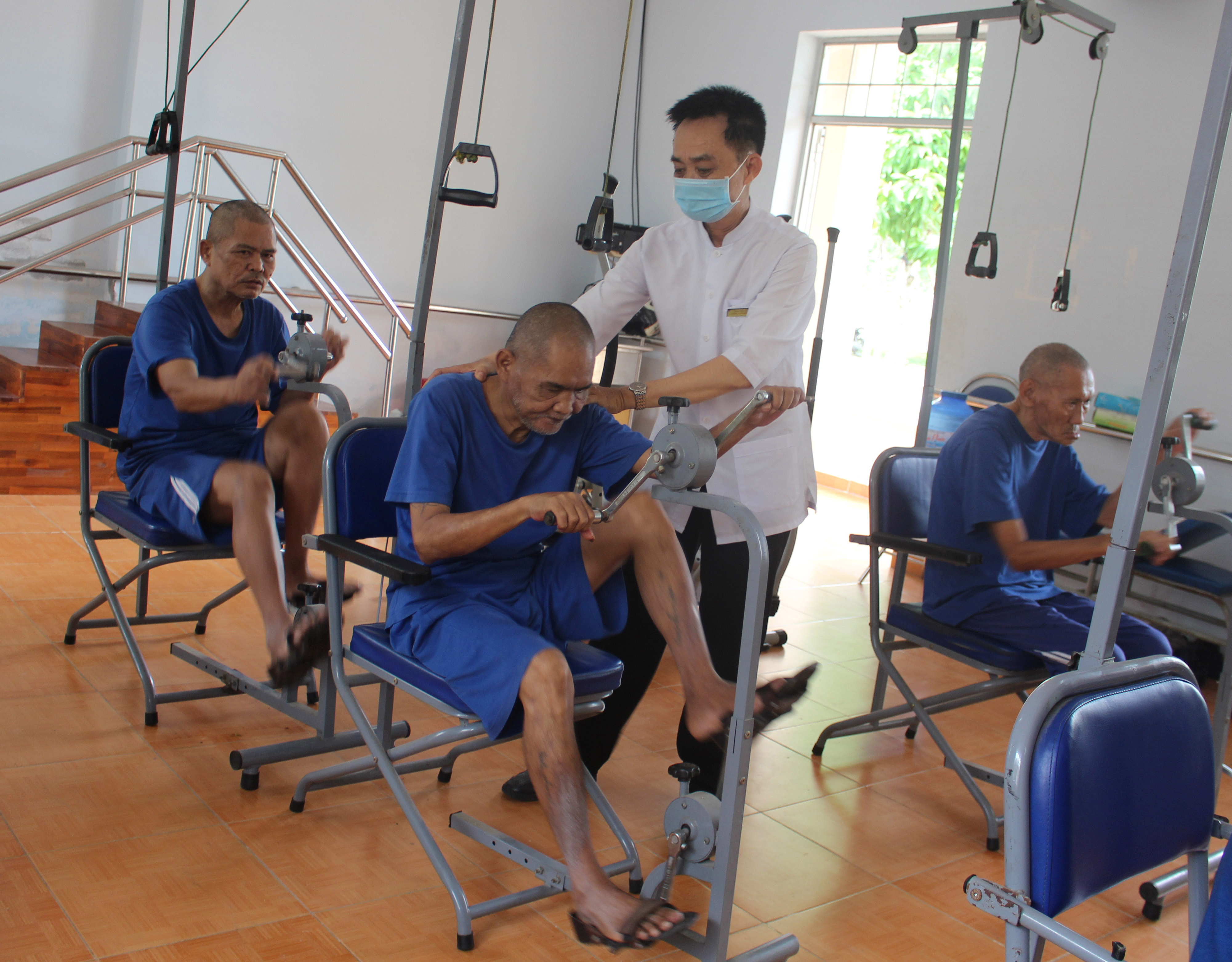 Hiện, Trung tâm có 2 phòng tập dành cho nam và nữ, mở cửa từ thứ Hai đến thứ Sáu hàng tuần. Các đối tượng đến Phòng Phục hồi chức năng tập luyện sẽ được các điều dưỡng kiểm tra sức khỏe, hướng dẫn các động tác tập cũng như cổ vũ, động viên tinh thần cho người tập. Điều dưỡng Tống Văn Hùng cho biết, Phòng Phục hồi chức năng mở cửa hơn 6 giờ/ngày. Phần lớn đối tượng được hướng dẫn tập luyện bị bại liệt, tai biến hay teo cơ.