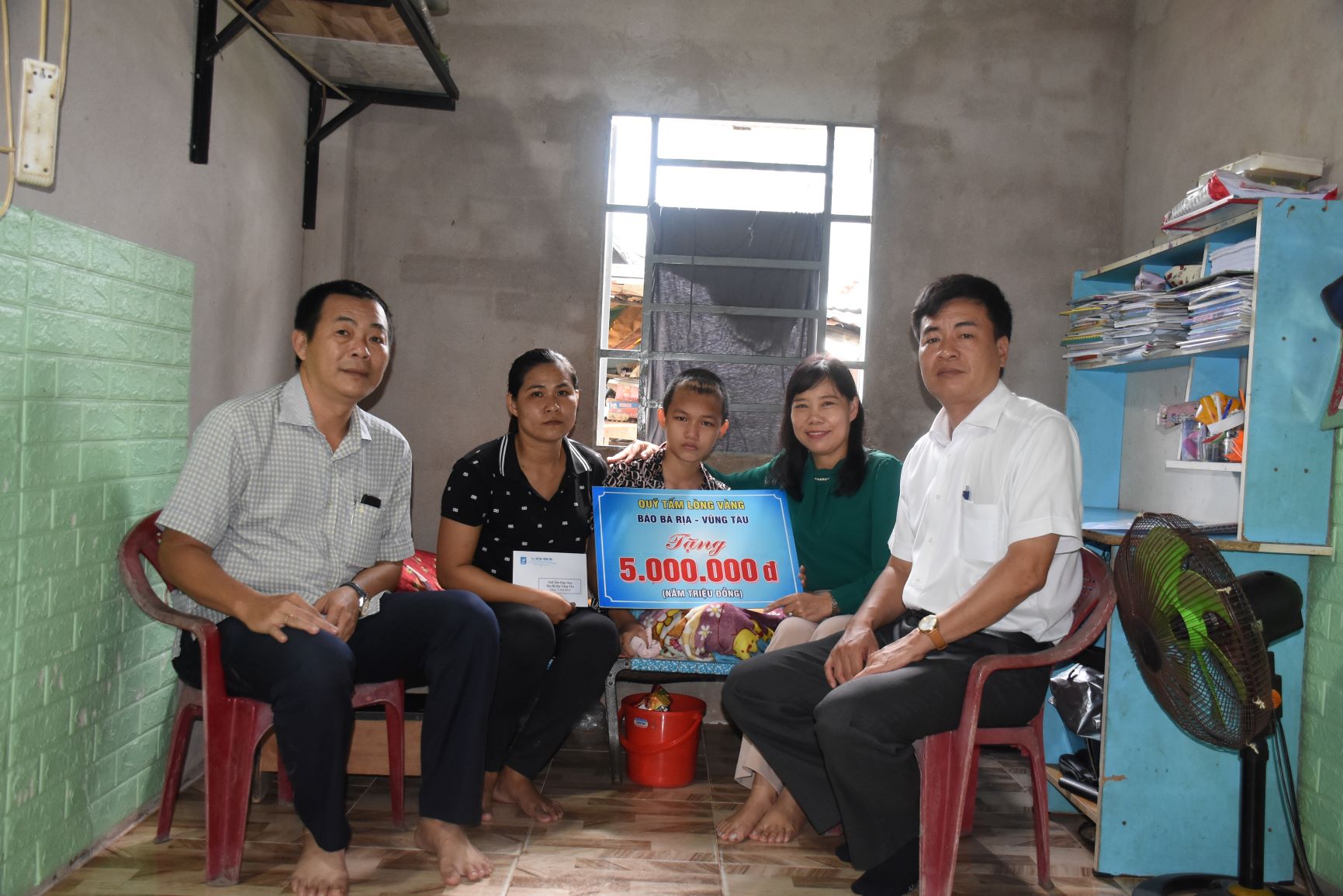 Số tiền trao cho gia đình bà Xuân là 5 triệu đồng, trích từ Quỹ “Tấm lòng vàng” của Báo BR-VT (nguồn từ Công ty TNHH Hóa dầu Long Sơn-Tập đoàn SCG đóng góp hỗ trợ).