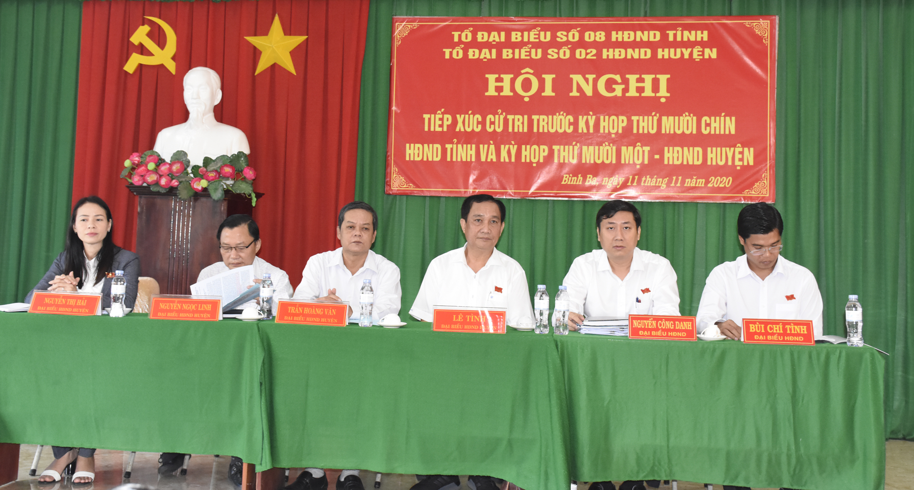 Chuẩn bị cho kỳ họp cuối năm của HĐND tỉnh khóa VI, nhiệm kỳ 2016-2021, sáng 11/11, các tổ đại biểu HĐND tỉnh đã tiếp xúc cử tri (TXCT) tại các phường 2, 3, 12 (TP. Vũng Tàu); các phường Phước Nguyên, Phước Hưng và xã Tân Hưng (TP. Bà Rịa); xã Phước Tỉnh (huyện Long Điền); các xã Phước Hội, Long Mỹ, Lộc An và TT. Phước Hải (huyện Đất Đỏ); xã Tân Hải (TX. Phú Mỹ); các xã Bình Ba, Suối Nghệ, Sơn Bình, Suối Rao, TT. Ngãi Giao (huyện Châu Đức); xã Xuyên Mộc (huyện Xuyên Mộc).