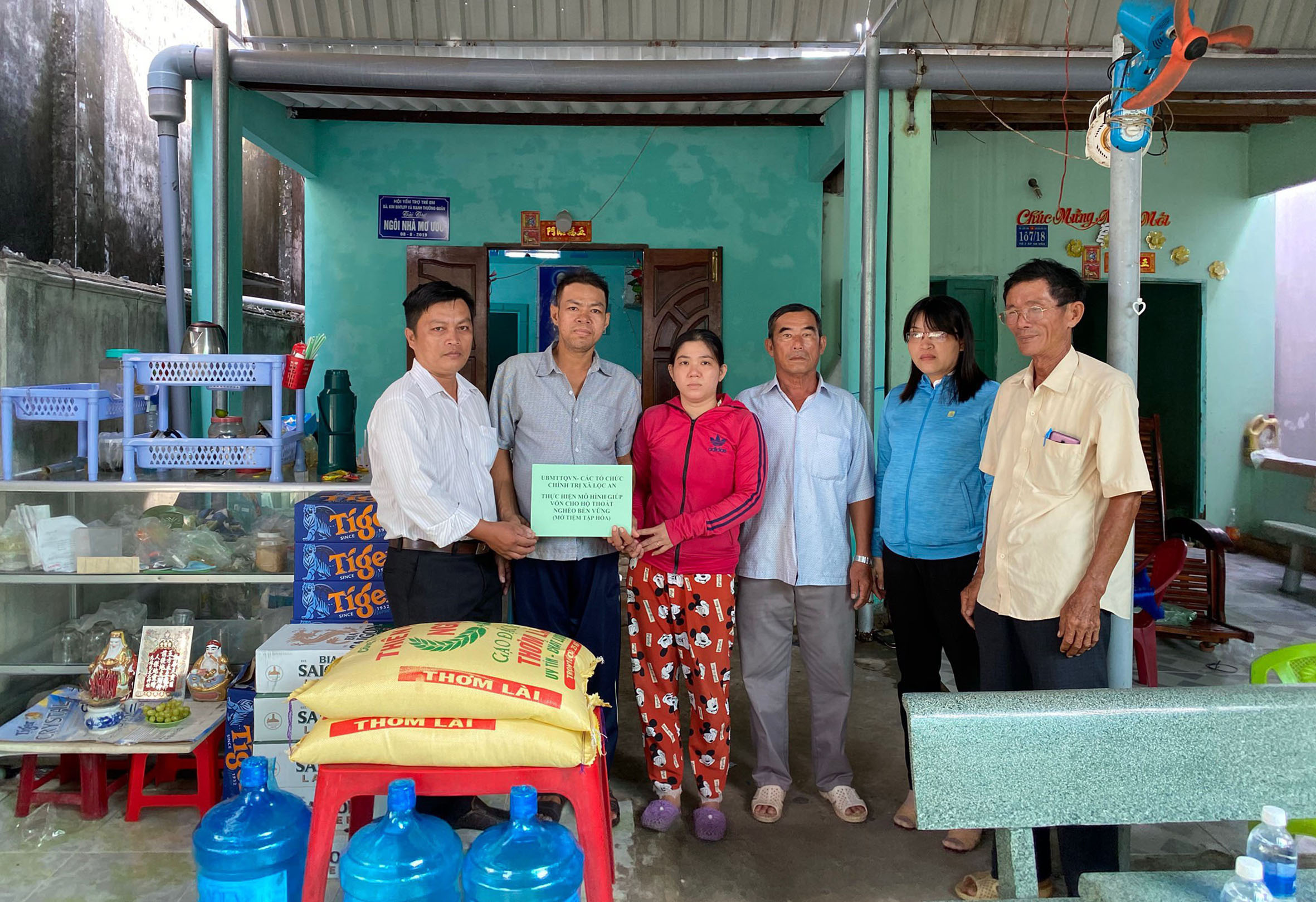 | Đại diện UBMTTQ Việt Nam xã Lộc An, huyện Đất Đỏ trao 5 triệu đồng giúp gia đình chị Nguyễn Thị Ngọc Nga mở tiệm tạp hóa. |