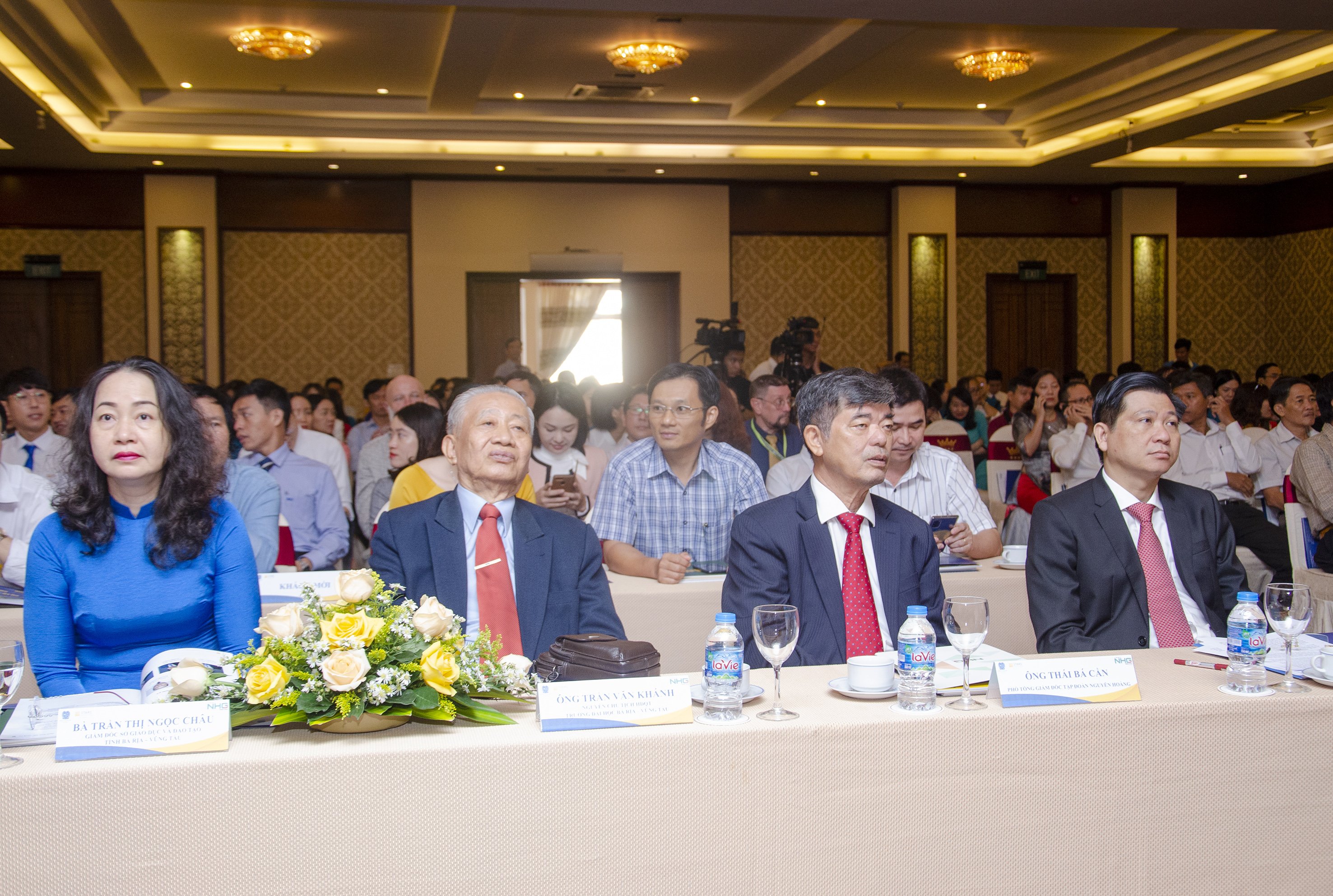 PGS. TS Nguyễn Thu Thủy, Vụ trưởng Vụ Giáo dục Đại học, Bộ GD-ĐT; ông Trần Văn Tuấn, Ủy viên Ban Thường vụ Tỉnh ủy, Phó Chủ tịch UBND tỉnh; ông Hoàng Quốc Việt, Chủ tịch Tập đoàn Giáo dục Nguyễn Hoàng tham dự buổi lễ.