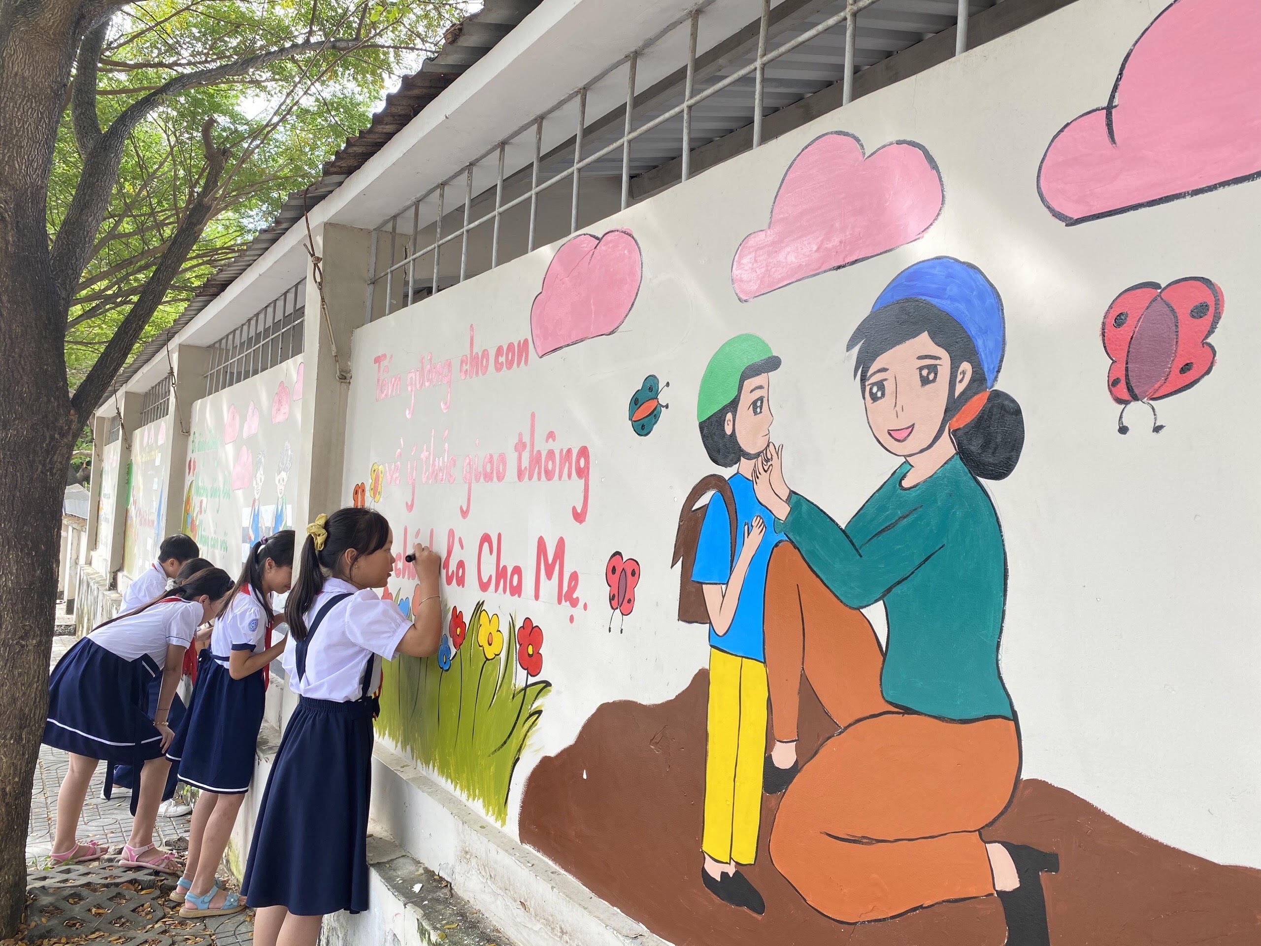 Chia sẻ về ý tưởng thực hiện, cô Lê Thị Cẩm Nhung, Tổng phụ trách Đội trường TH Cao Văn Ngọc cho biết, cô và các bạn trong CLB Mỹ thuật của trường đã thảo luận và thống nhất sử dụng những câu ca dao, khẩu hiệu về ATGT. Đồng thời lựa chọn hình ảnh đơn giản, thiết thực để các em có cái nhìn sinh động, dễ dàng ghi nhớ. Cùng việc nắm bắt được sở thích của HS là vẽ tranh nên khi được khởi xướng, nhiều em thích thú và vui vẻ tham gia. Sau 2 tuần triển khai thực hiện vào các giờ ra chơi, công trình đã hoàn thành. Theo cô Nhung, hình ảnh đóng vai trò rất quan trọng để minh họa, khơi gợi sự hứng thú, tạo sự vui vẻ thì HS mới thích và nhiệt tình hưởng ứng.