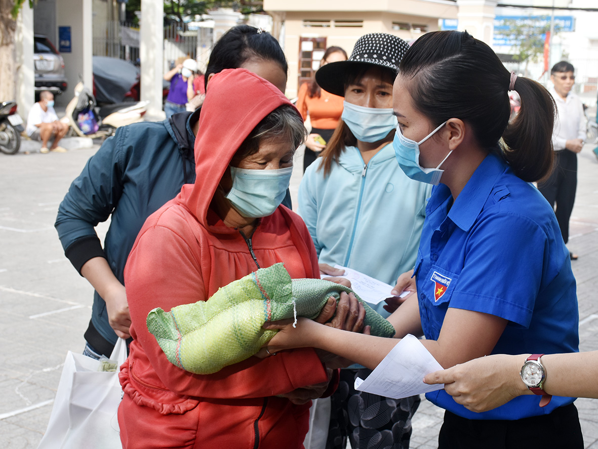 | ĐVTN phường 11 phát gạo cho người dân có hoàn cảnh khó khăn. |