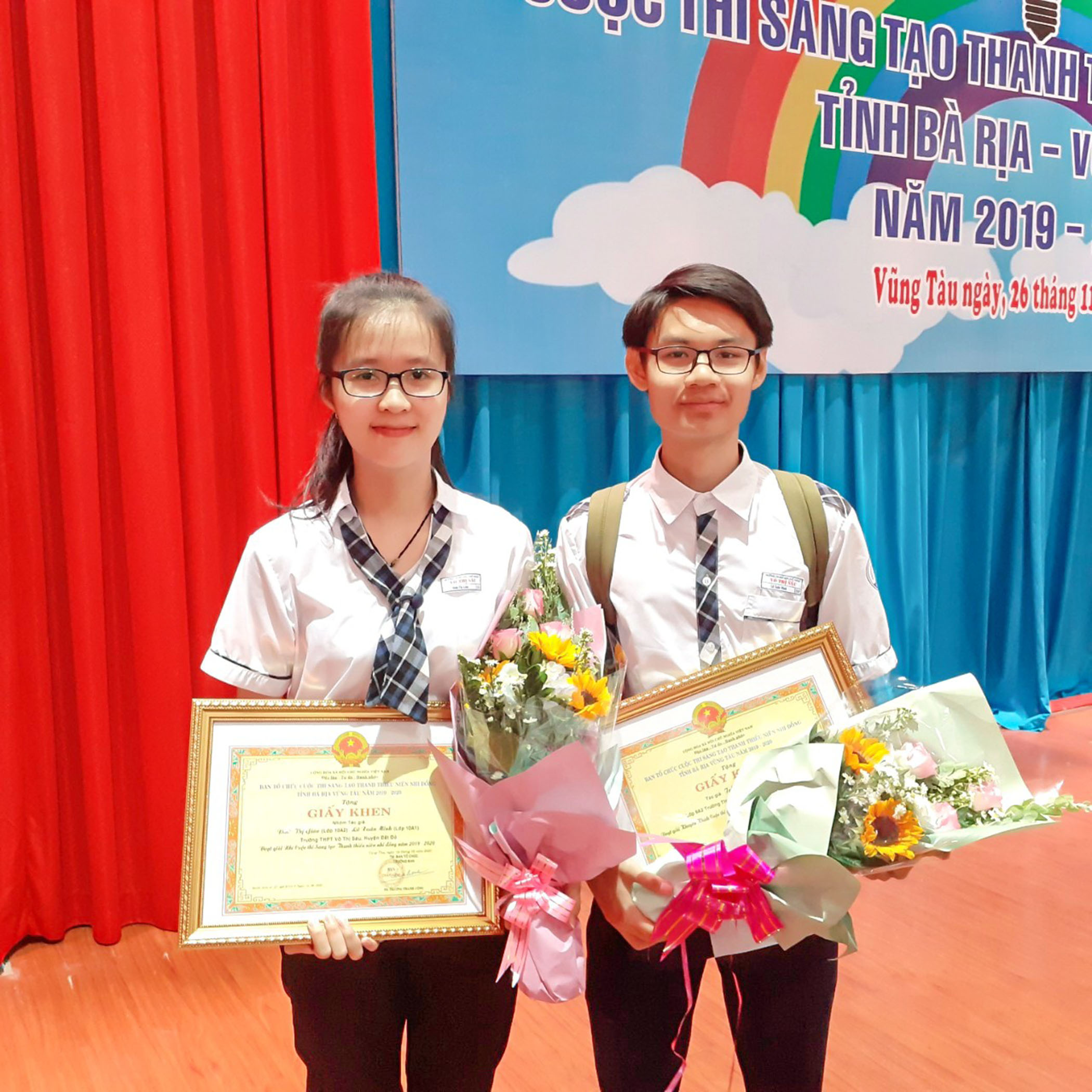 | Đinh Thị Giàu và Lữ Xuân Minh lọt vào vòng chung kết chương trình “Tri thức trẻ vì giáo dục” năm 2020 do Trung ương Đoàn tổ chức với thiết kế “Bàn học chữ nổi đa năng dành cho HS khiếm thị”. |