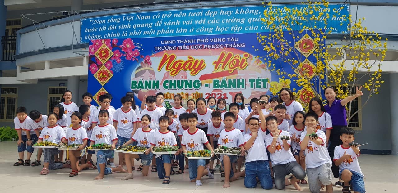 | GV cần lắng nghe trẻ nhiều hơn và chú trọng hơn nữa tới sự phát triển toàn diện của HS chứ không chỉ là truyền thụ kiến thức sách vở. Trong ảnh: Trường TH Phước Thắng (TP. Vũng Tàu) tổ chức Ngày hội bánh chưng, bánh tét. |