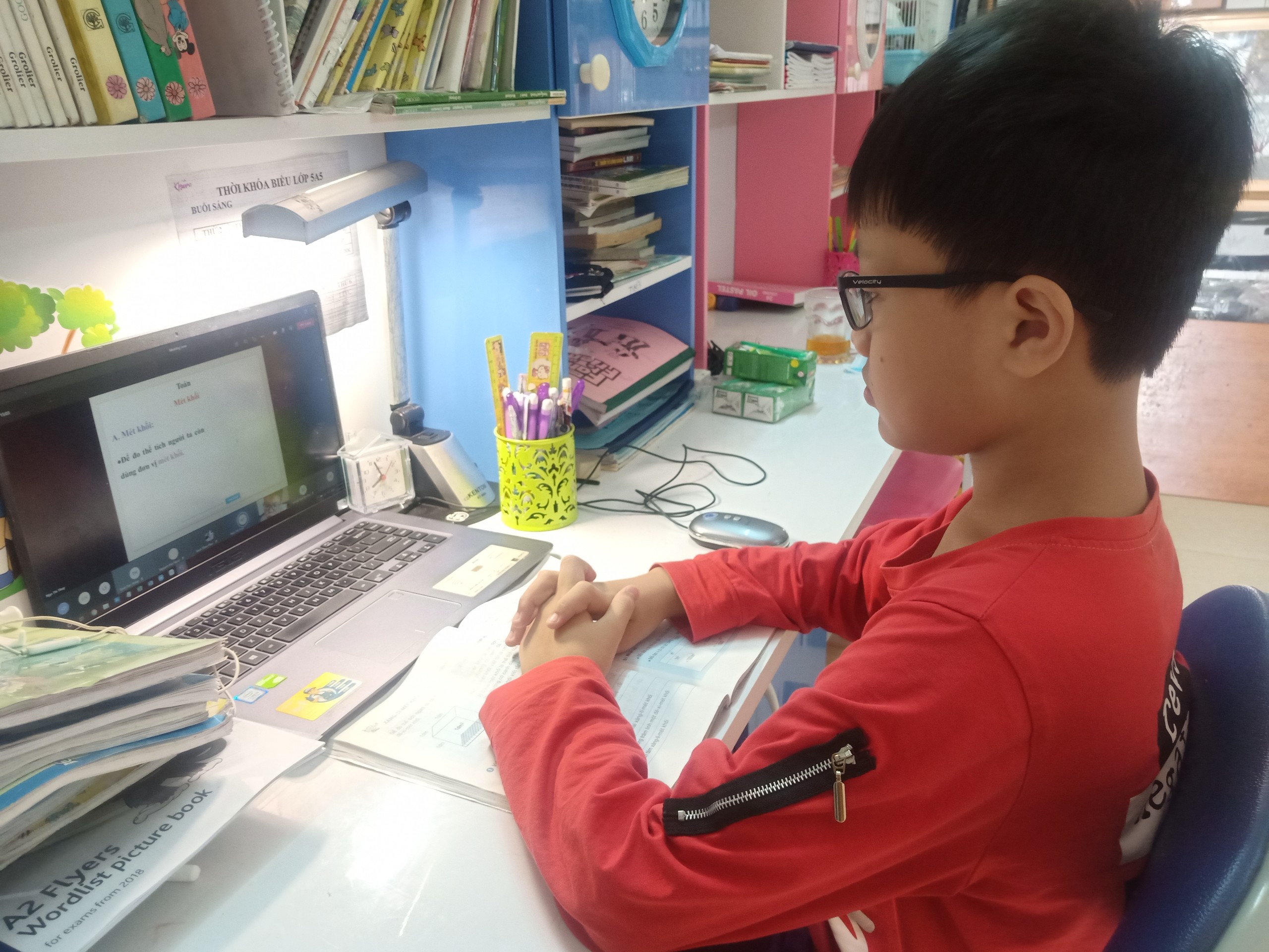 | Khi HS đi học trở lại, các trường sẽ tiến hành rà soát kiến thức, chương trình học trực tuyến, để có phương án giảng dạy phù hợp. Trong ảnh: HS Lớp 5A5, Trường TH Quang Trung (TP. Vũng Tàu) học trực tuyến tại nhà. |