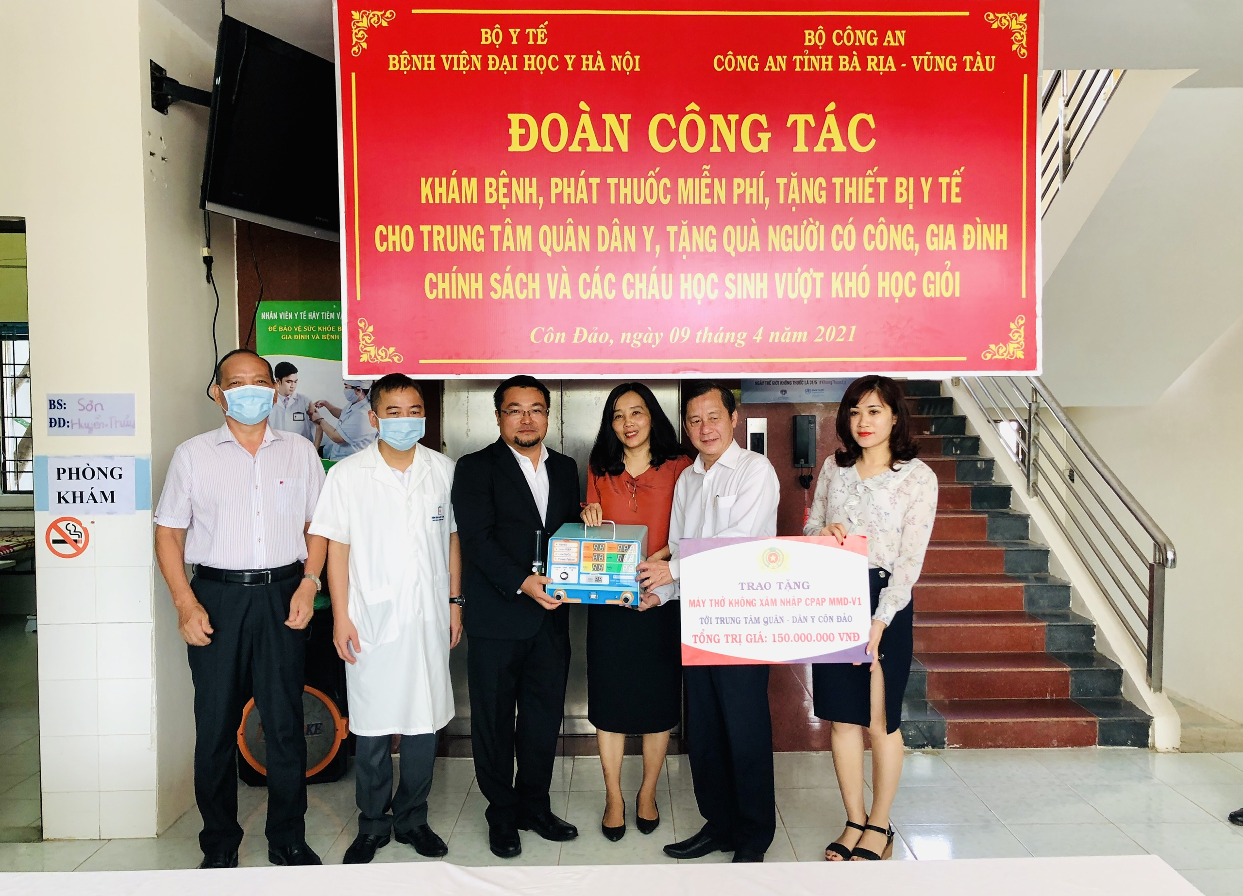 Ngoài khám bệnh và cấp thuốc miễn phí, Bệnh viện Đại học Y Hà Nội và Công an tỉnh cùng các nhà tài trợ đã trao tặng 1 máy thở trị giá 150 triệu đồng cho Trung tâm Y tế Quân dân y huyện Côn Đảo; trao hơn 100 suất quà cho cựu tù chính trị Côn Đảo, gia đình chính sách, HS và gia đình có hoàn cảnh khó khăn trên địa bàn huyện với tổng trị giá hơn 70 triệu đồng.