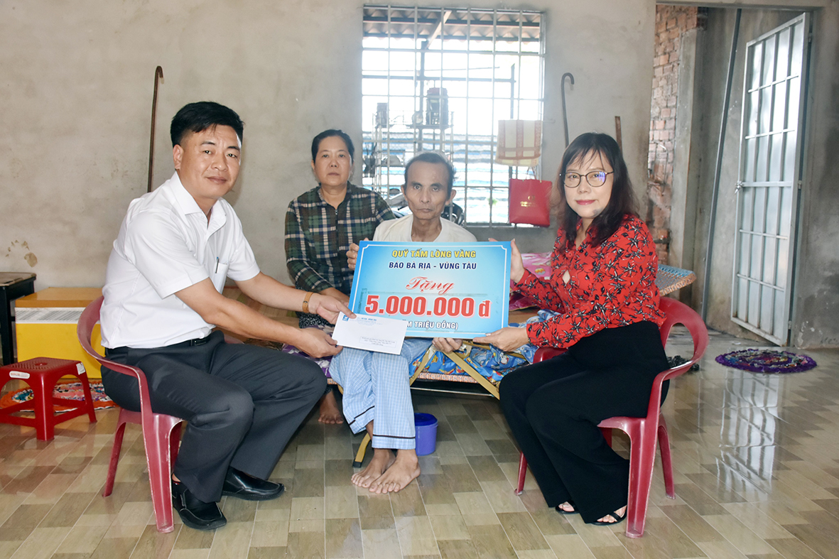 Tại các nơi đến thăm, bà Đỗ Nguyễn Hoàng Dung, Quyền Tổng Biên tập Báo BR-VT đã ân cần thăm hỏi, động viên và trao cho mỗi gia đình số tiền 5 triệu đồng, được trích từ Quỹ “Tấm lòng vàng” Báo BR-VT và đóng góp của bạn đọc.