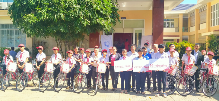 Tặng xe đạp và hợp đồng bảo hiểm cho trẻ em có hoàn cảnh khó khăn