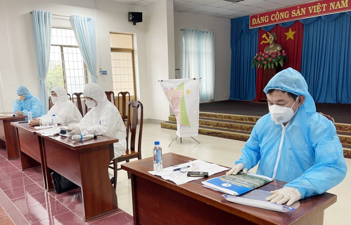 | Lãnh đạo BCĐ Phòng, chống dịch COVID-19 huyện Long Điền rà soát lại số mẫu còn lại cần lấy trong chiều 23/7. |