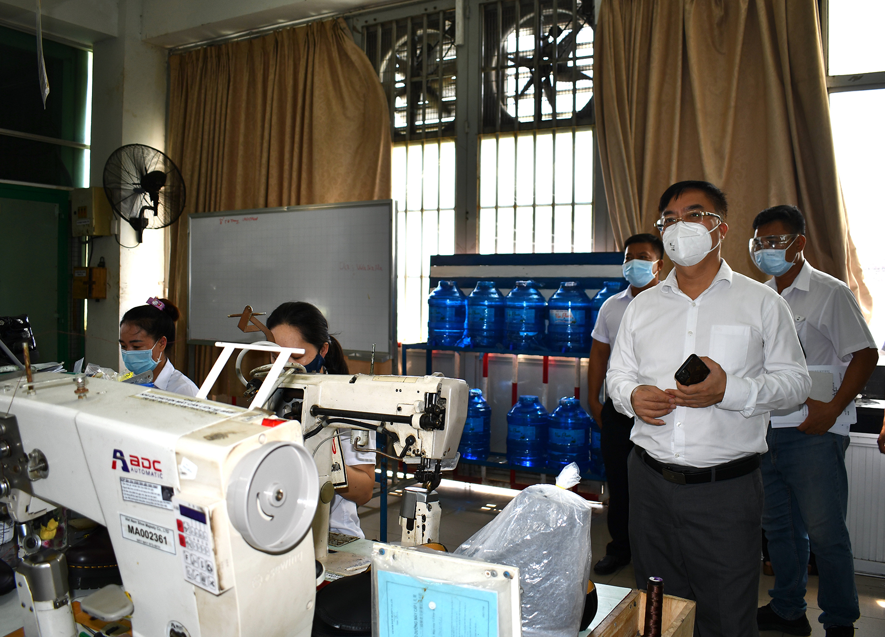 | Ông Hoàng Vũ Thảnh, Chủ tịch UBND TP. Vũng Tàu kiểm tra công tác phòng, chống dịch và thực hiện Chỉ thị 16 tại Công ty TNHH Sản Xuất Giày Uy Việt (KCN Đông Xuyên). |