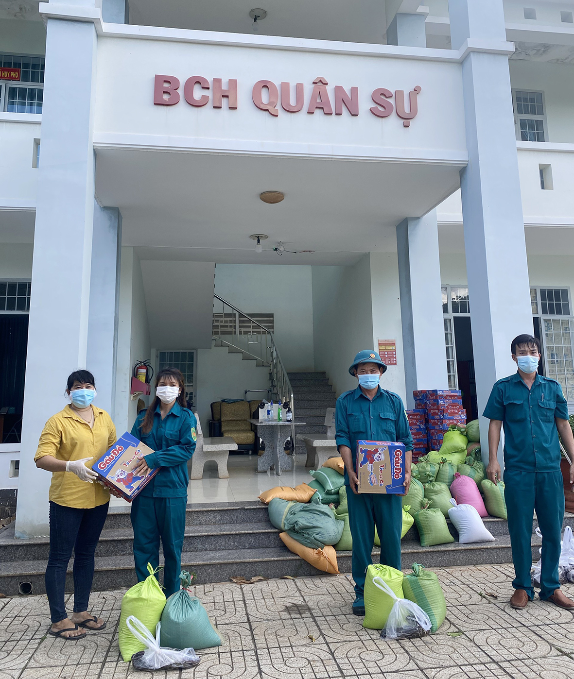 Phường còn trao tặng 27 phần quà, mỗi phần gồm 20kg gạo, 1 thùng mì, cá tươi… cho lực lượng quân sự làm nhiệm vụ hỗ trợ công tác giữ an ninh trật tự và phòng, chống dịch tại địa phương.