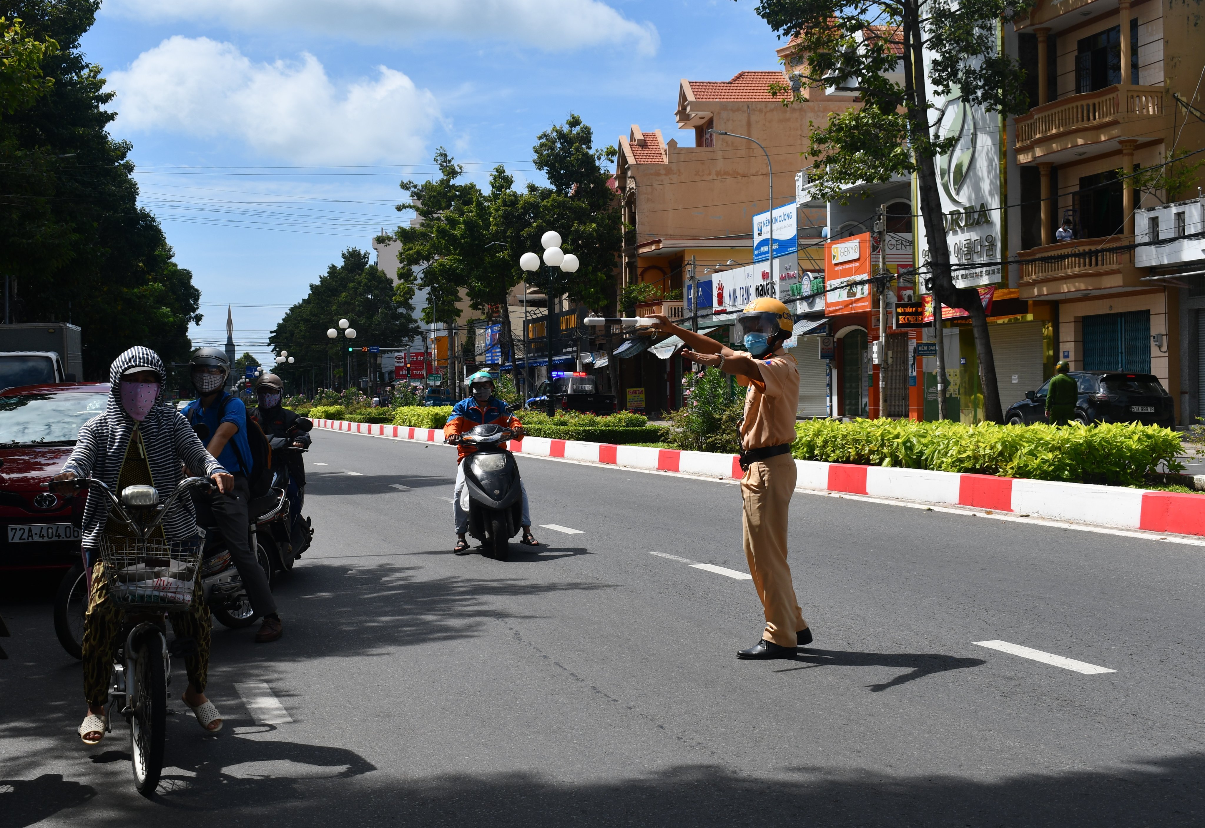| Lực lượng chức năng kiểm soát người lưu thông trên đường phố Vũng Tàu. |