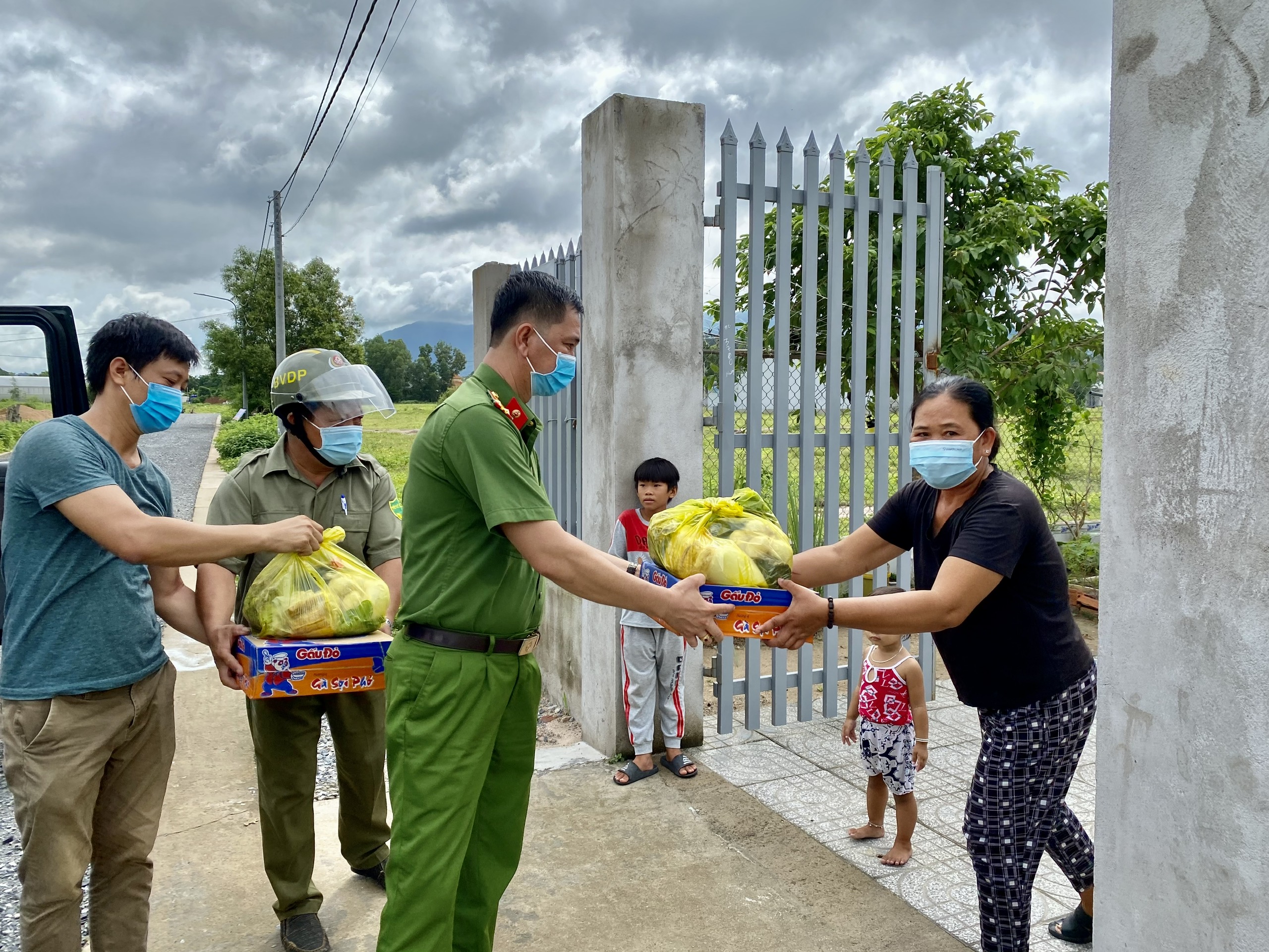 Công an phường Phước Hòa tự tổ chức xe chở nhu yếu phẩm đến trao tại nhà từng hộ dân và khu nhà trọ.