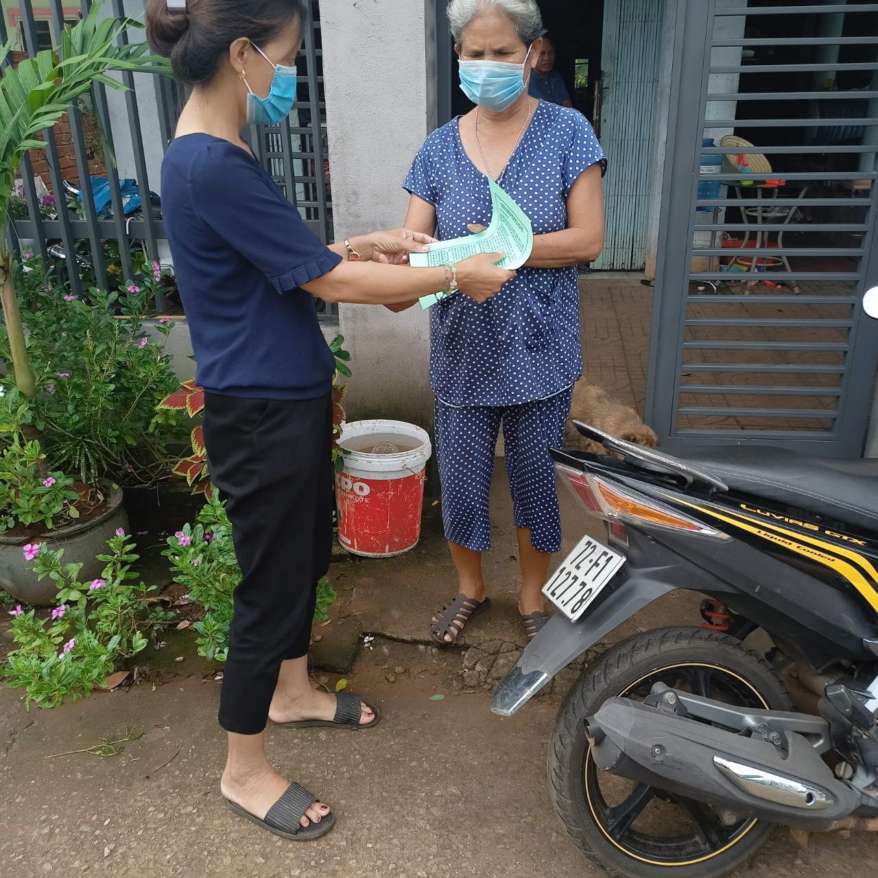 | Đại diện tổ dân cư phát tờ rơi đến tận hộ gia đình tại ấp Xà Bang 1, xã Xà Bang. |