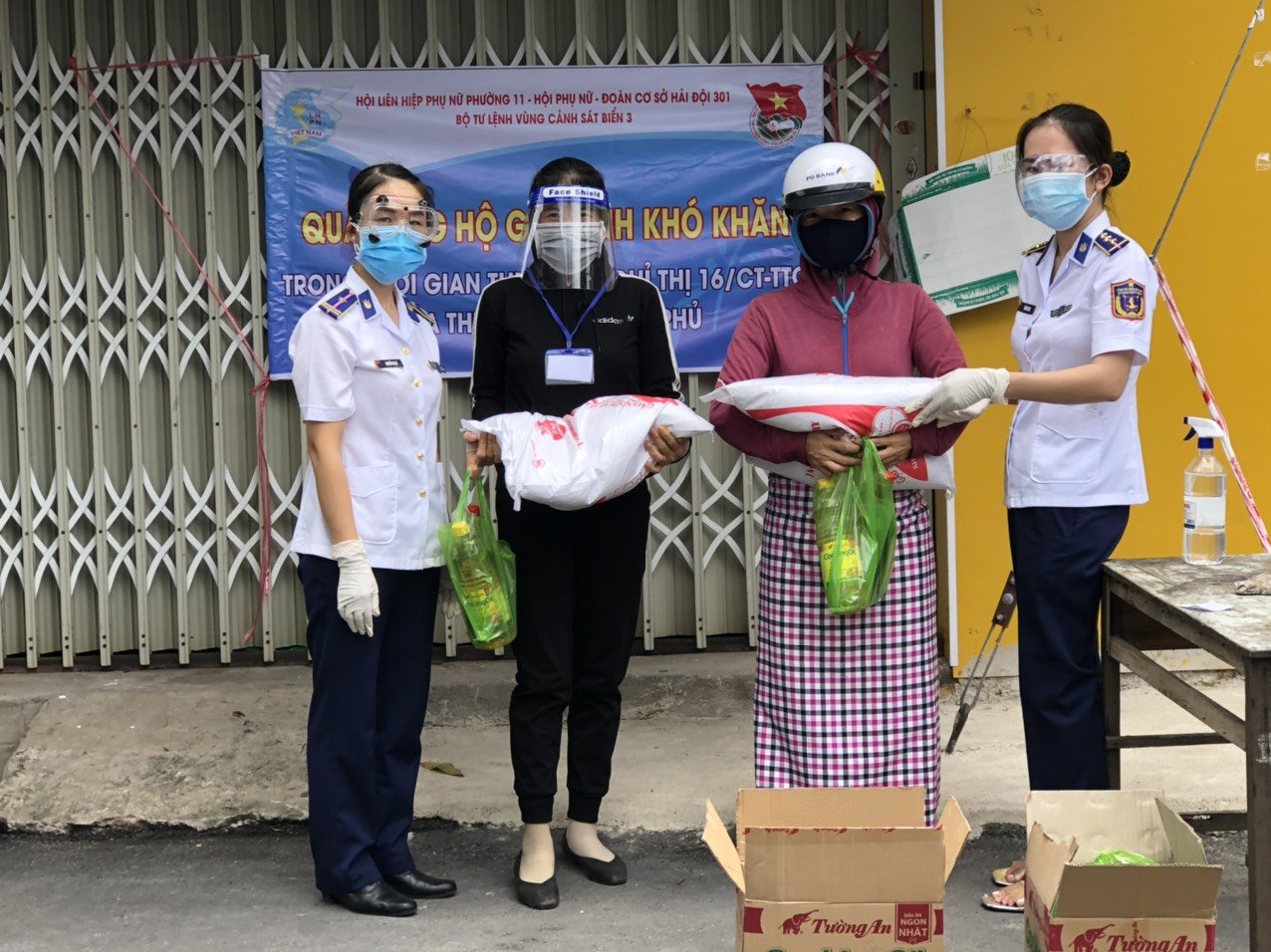●Cùng ngày, Hội LHPN phường 11 (TP.Vũng Tàu) đã vận động Hội LHPN và Đoàn Thanh niên Bộ Tư lệnh Vùng Cảnh sát biển 3 ủng hộp quà tặng cho người dân địa phương.
