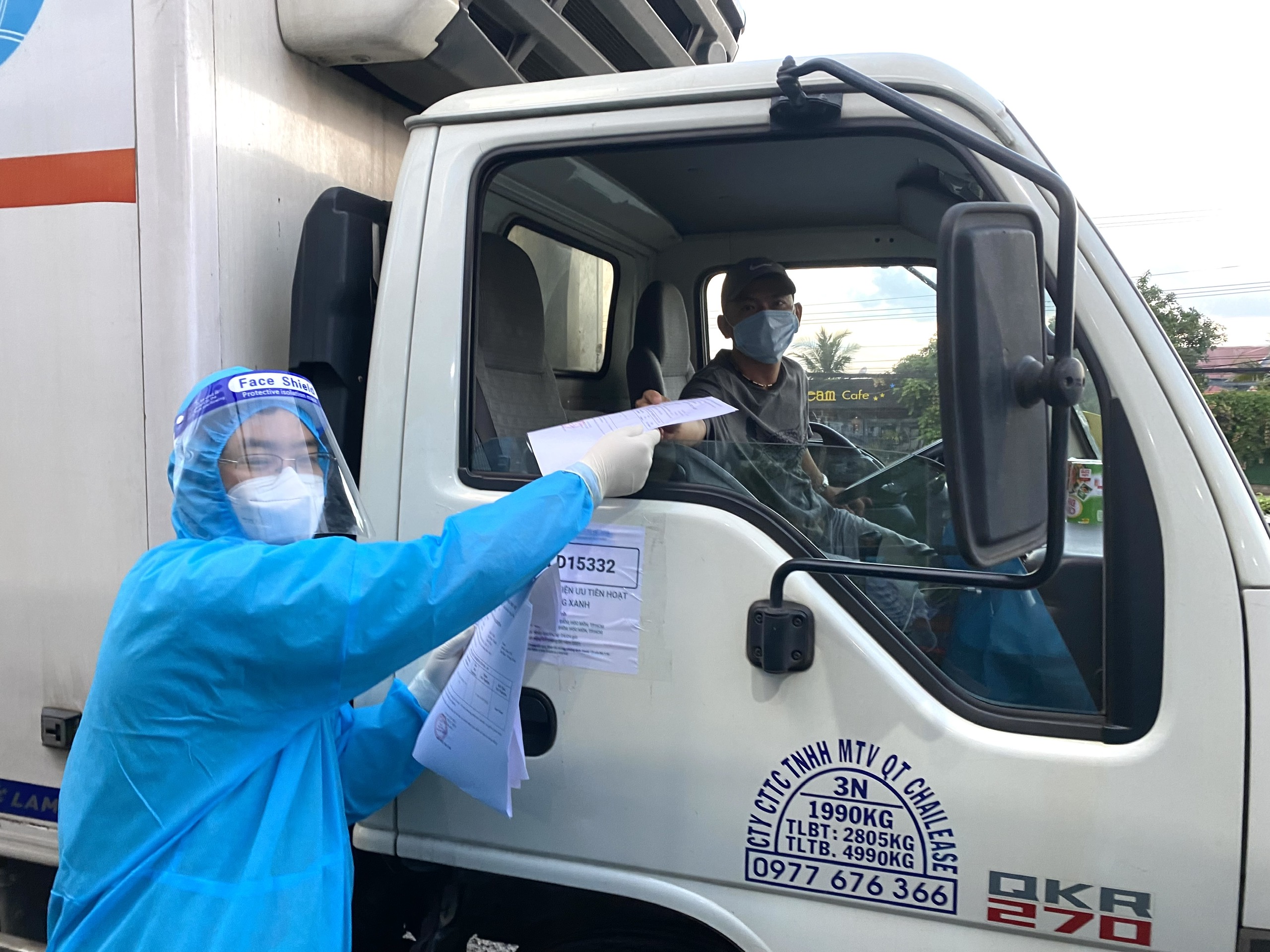 | Nhân viên Phòng khám Đa khoa Asia Phú Mỹ (tổ 1, khu phố Mỹ Tân, phường Mỹ Xuân) trả kết quả test nhanh kháng nguyên SARS-CoV-2 cho tài xế. |