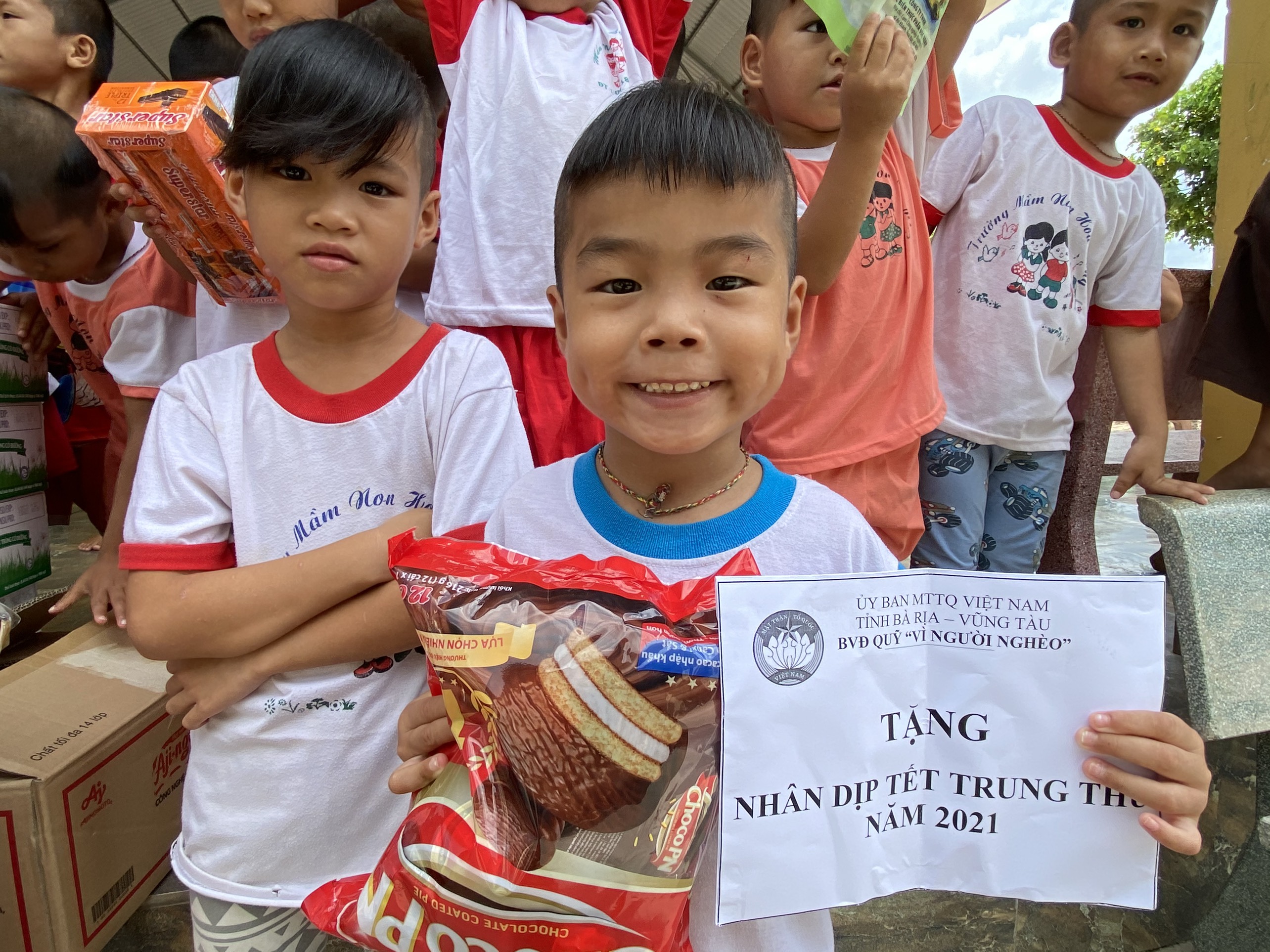 Theo ông Nguyễn Kế Toại, Phó Chủ tịch UBMTTQ Việt Nam tỉnh, Trung thu là Tết thiếu nhi, là dịp để các em nhỏ được đón chú Cuội, chị Hằng. Để các cháu nhỏ mồ côi đang được nuôi dưỡng tại các trung tâm có thêm niềm vui, UBMTTQ Việt Nam tỉnh đã đi trao tặng 7 trung tâm tại TX.Phú Mỹ, TP.Vũng Tàu, mỗi cơ sở một phần quà trị giá 10 triệu đồng (gồm sữa, bánh kẹo, tiền mặt).