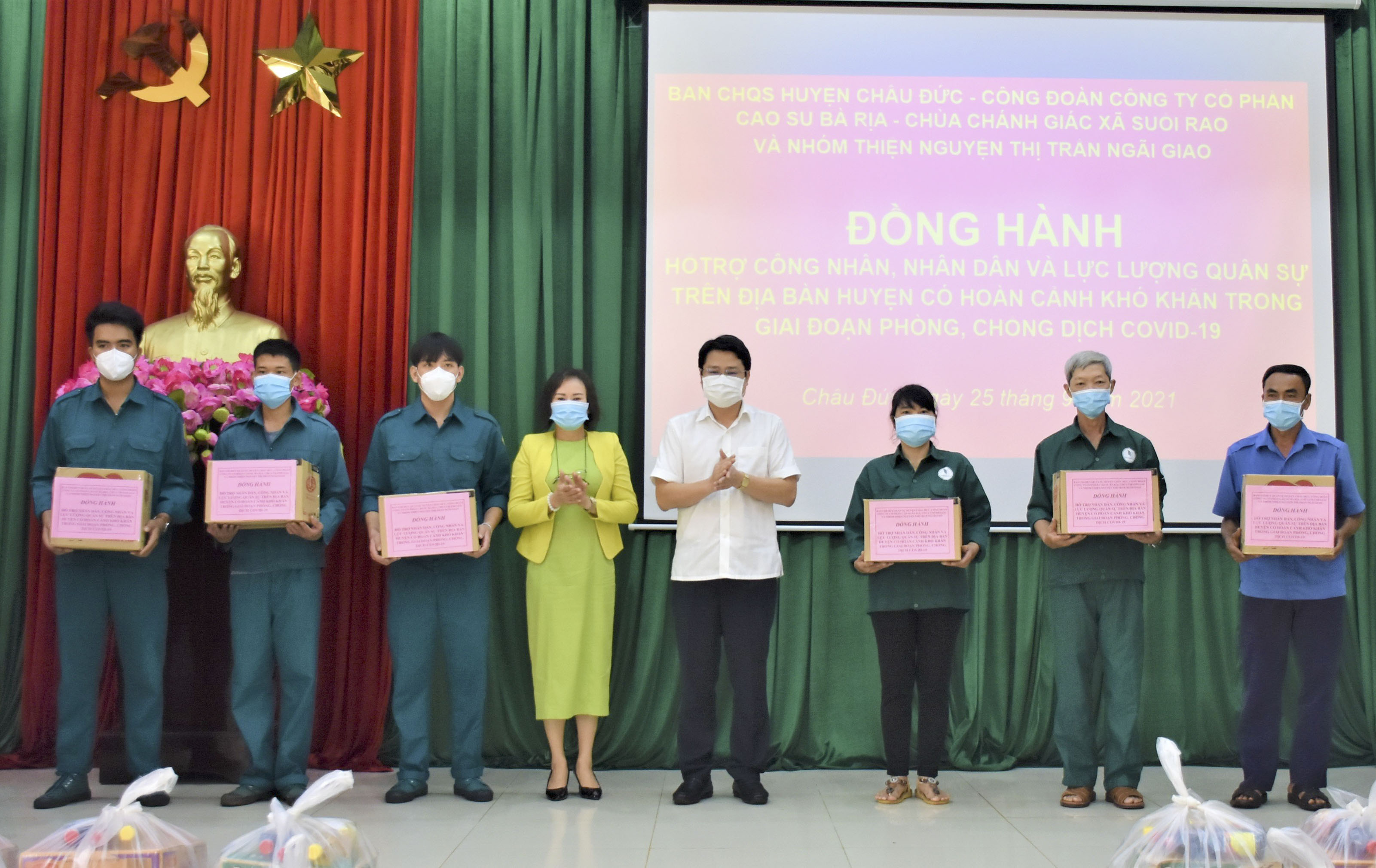 Ngày 25/9, Ban CHQS huyện Châu Đức, Công đoàn Công ty CP Cao su Bà Rịa, Chùa Chánh Giác xã Suối Rao và nhóm thiện nguyện TT. Ngãi Giao tổ chức trao tặng 200 phần quà cho lực lượng dân quân, công nhân, người dân trên địa bàn huyện có hoàn cảnh khó khăn do ảnh hưởng của dịch COVID-19.
