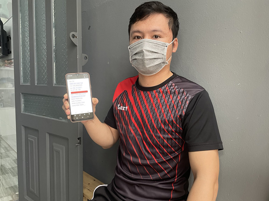 “Thấy điện thoại báo có tin nhắn, tôi xem và rất bất ngờ khi nhận được khoản hỗ trợ 2,1 triệu đồng sau 19 tháng đóng bảo hiểm thất nghiệp”, anh Trần Hữu Hoàng (SN 1992, tạm trú 259/11, Nguyễn Hữu Cảnh, phường Thắng Nhất, TP.Vũng Tàu) chia sẻ niềm vui khi được nhận tiền từ gói hỗ trợ theo Nghị quyết 116/NQ-CP.