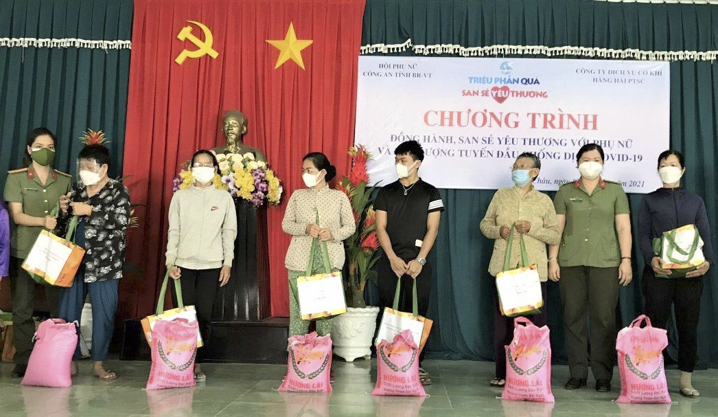 Ngày 13/11, Hội LHPN Công an tỉnh phối hợp Hội LHPN huyện Xuyên Mộc và Công ty TNHH MTV Dịch vụ Cơ khí Hàng hải PTSC trao tặng 40 phần quà cho các gia đình hội viên phụ nữ nghèo, gia đình chính sách tại xã Bình Châu (huyện Xuyên Mộc).