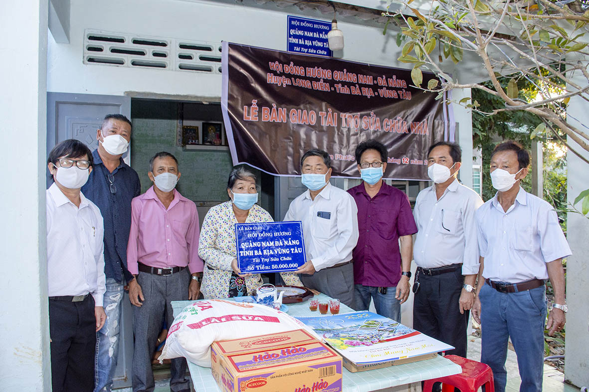 Hoạt động xây mới, sửa nhà, thăm hỏi, tặng quà các gia đình người Quảng Nam - Đà Nẵng có hoàn cảnh khó khăn là một trong những hoạt động thường niên của Hội. Qua đó tạo nhịp cầu kết nối, sẻ chia yêu thương, phát huy tinh thần “lá lành đùm lá rách” giữa những người con xứ Quảng tại BR-VT.