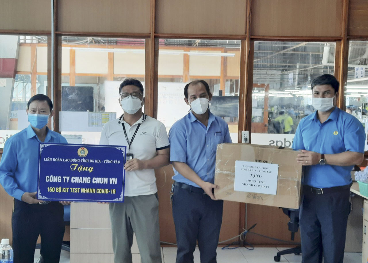 Sáng 8/12, Đoàn công tác của LĐLĐ tỉnh do ông Nguyễn Châu Trinh, Phó Chủ tịch LĐLĐ tỉnh làm Trưởng đoàn đã đến thăm, tặng 150 bộ kít xét nghiệm nhanh kháng nguyên SARS-CoV-2 với tổng trị giá hơn 22 triệu đồng cho Công ty TNHH Chan Chun Vina (Cụm Công nghiệp An Ngãi, xã An Ngãi, huyện Long Điền).