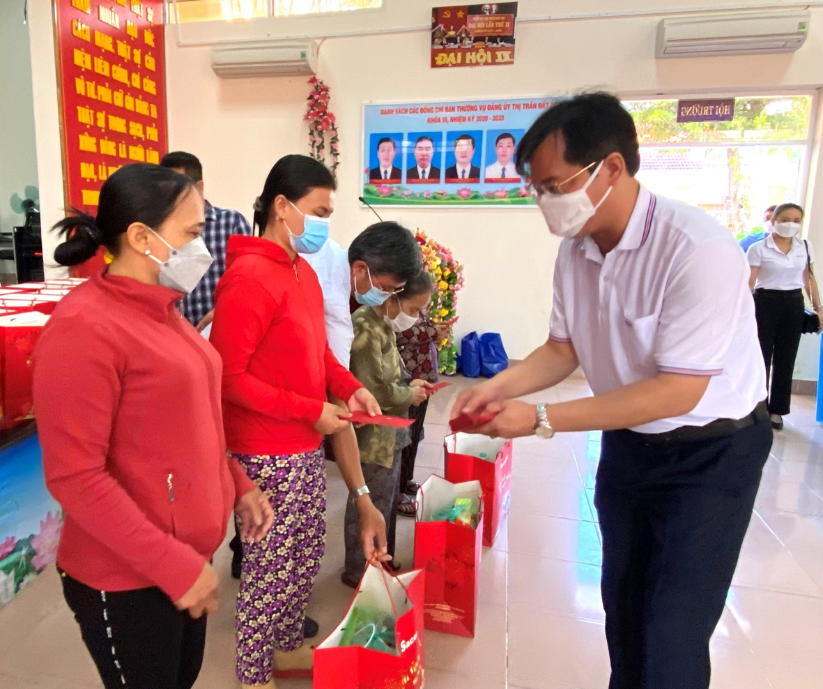 | Ông Trần Quốc Khang, Giám đốc Sacombank Chi nhánh Bà Rịa tặng quà cho các hộ khó khăn trên địa bàn TT.Đất Đỏ, huyện Đất Đỏ. |