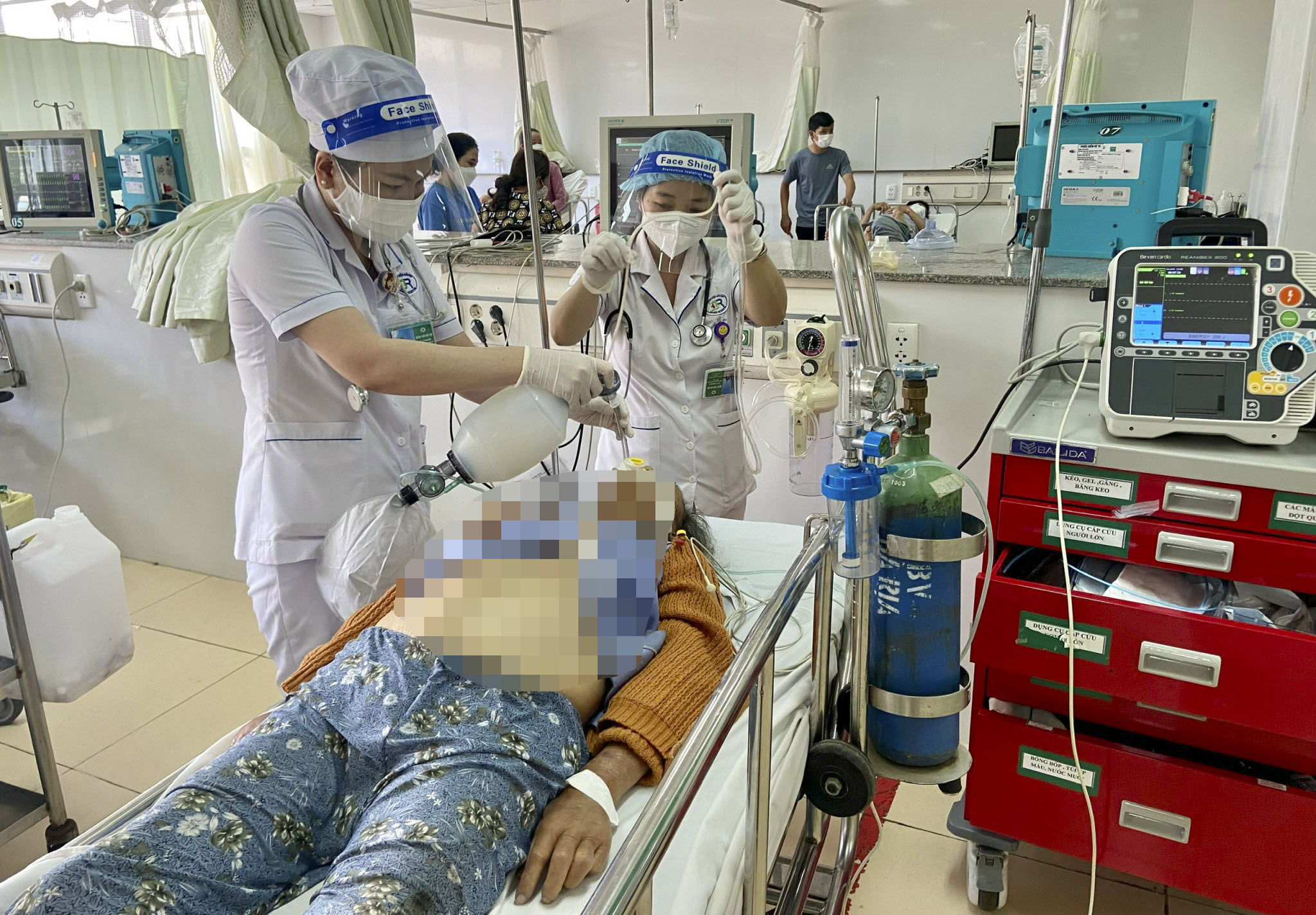 | Nhân viên y tế Bệnh viện Bà Rịa cấp cứu cho bệnh nhân. |
