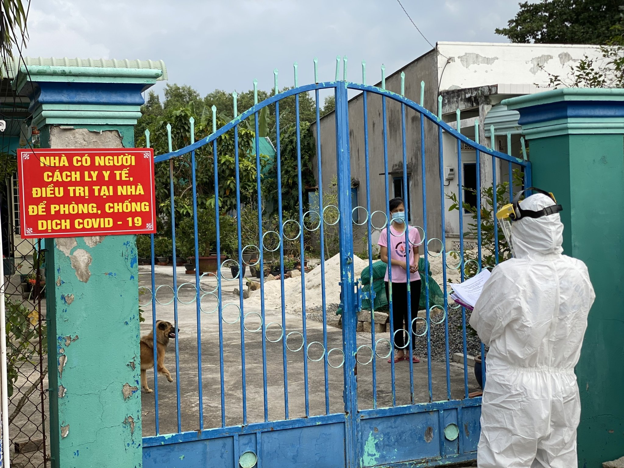 | Nhân viên y tế Trạm Y tế phường Hắc Dịch, TX.Phú Mỹ theo dõi sức khỏe một trường hợp F0 điều trị tại nhà. Ảnh: MỸ LƯƠNG |