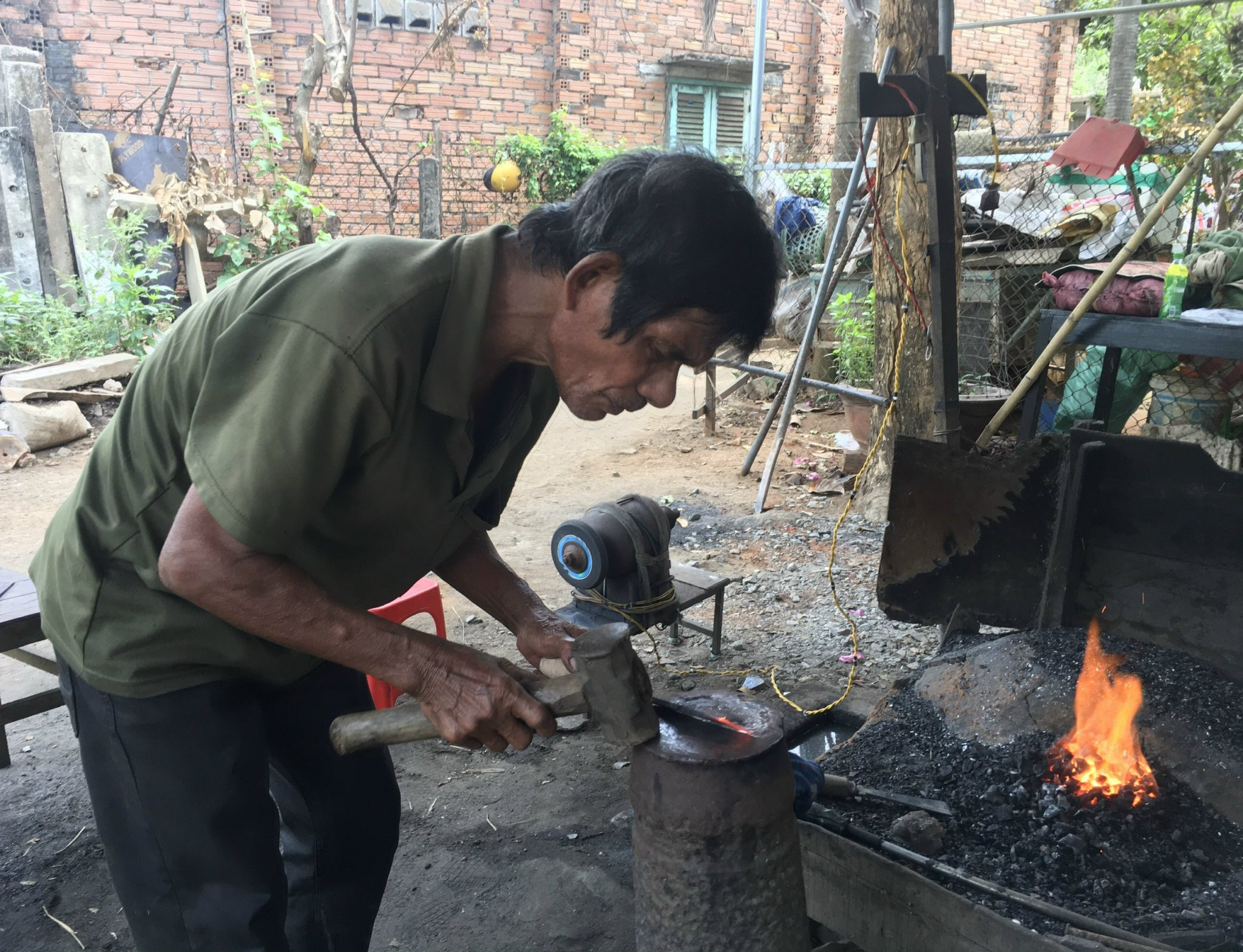 Hiện tại, lò rèn của ông Bảy chỉ hoạt động lai rai chứ không nhộn nhịp, thường xuyên như trước đây. Ông chia sẻ, vì số đơn đặt hàng giảm, trong khi đó các nguyên liệu làm ra sản phẩm đều tăng giá nên cũng không lời được bao nhiêu. Để tiết kiệm chi phí, ông đặt mua mỗi lần từ 15-20 bao than (với giá 80 ngàn đồng/bao) ở huyện Xuyên Mộc. Ông cũng đến các vựa ve chai lớn trên địa bàn tỉnh mua thép nhằm mục đích tái sử dụng. Sau khi trừ hết các chi phí, mỗi tháng lò rèn của ông mang lại nguồn thu nhập từ 4-4,5 triệu đồng.