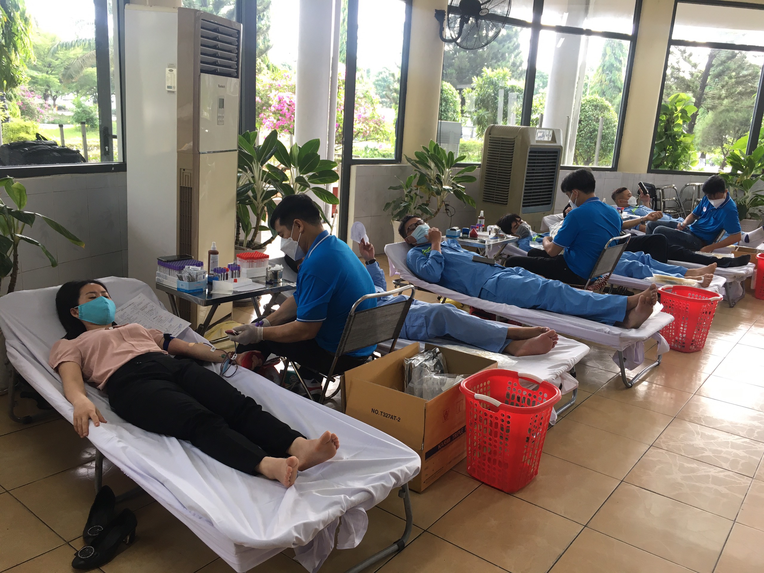 | Người lao động công ty TNHH MTV Thép tấm lá Phú Mỹ tham gia hiến máu. |