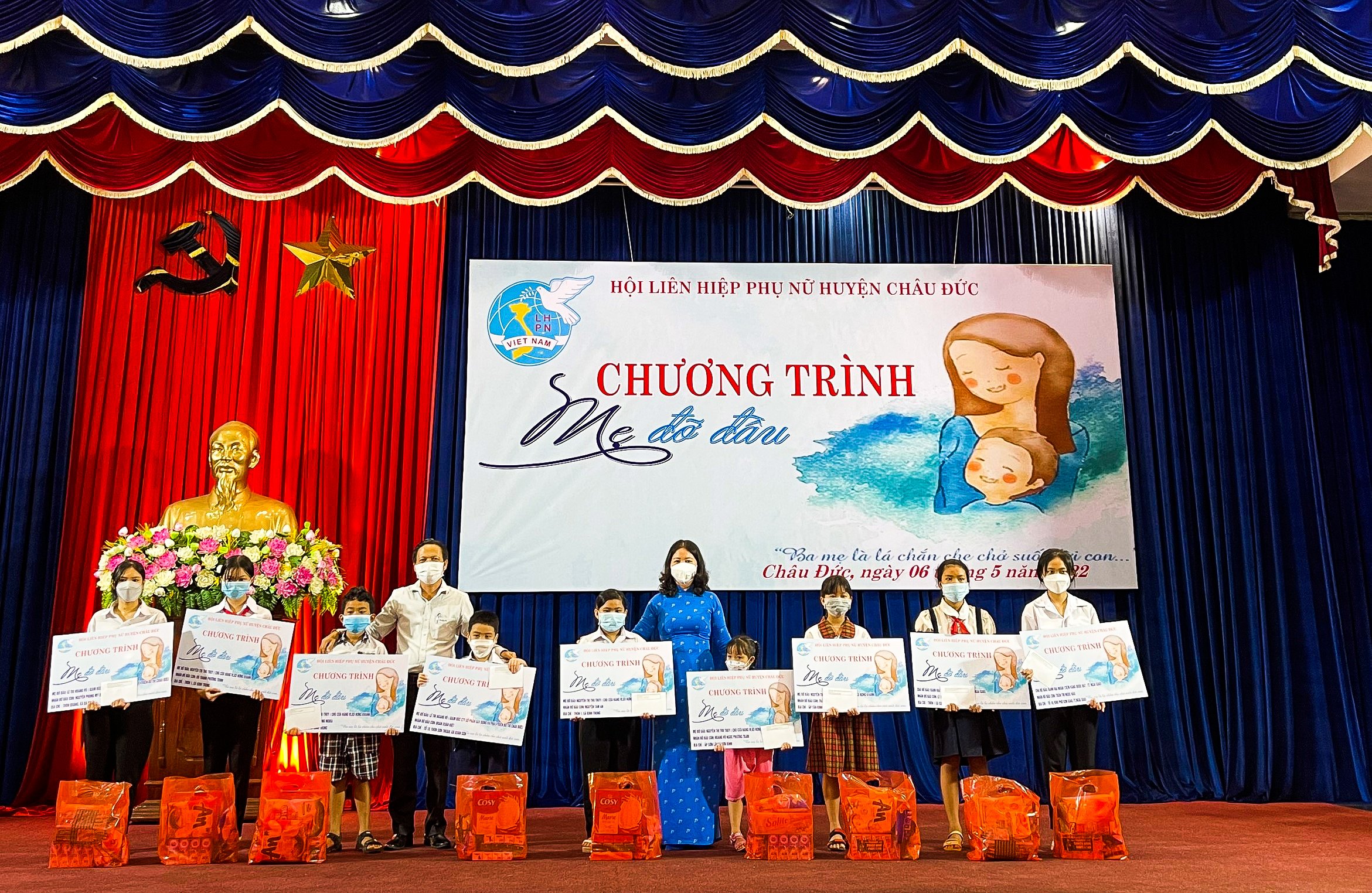 Dịp này, Hội Liên hiệp Phụ nữ huyện Châu Đức đã trao 61 phần quà là dụng cụ học tập, bánh, kẹo, sữa cho trẻ mồ côi, mỗi phần trị giá 200.000 đồng.