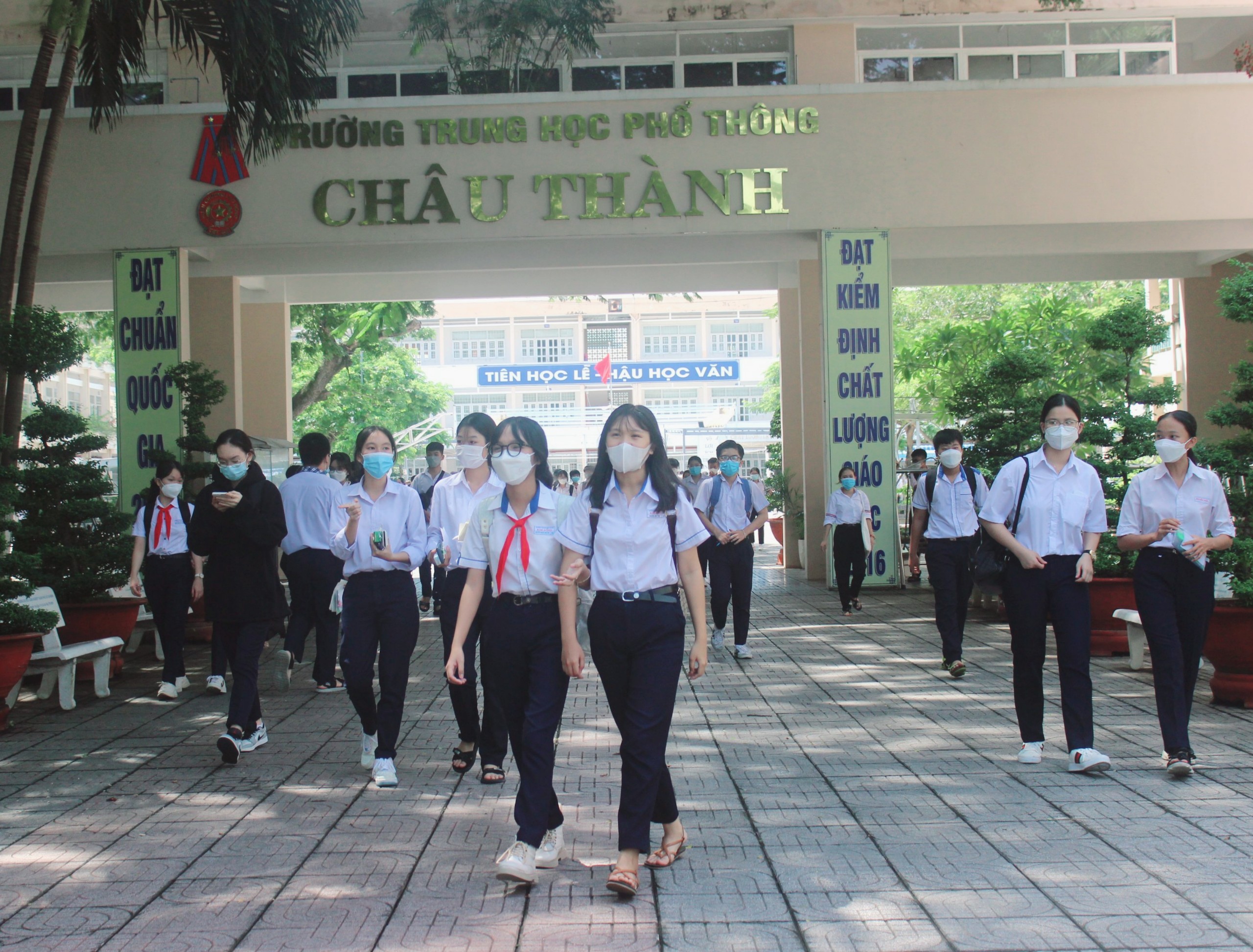 | Thí sinh dự thi tại điểm thi Trường THPT Châu Thành (TP. Bà Rịa) ra về sau khi hoàn thành bài thi môn Toán. |