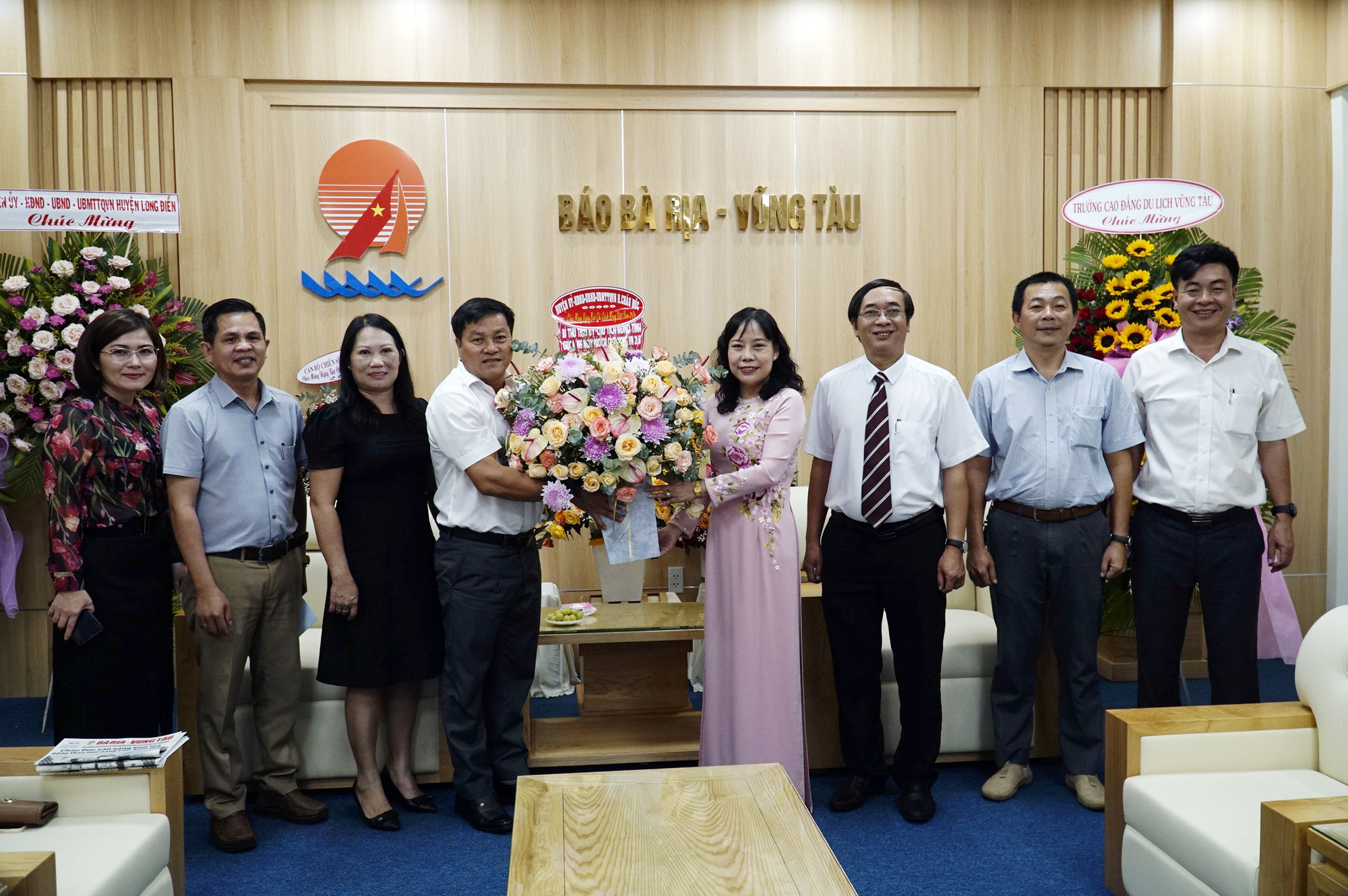 | Bà Ngô Thị Liên, Hiệu trưởng Trường Chính trị tỉnh thăm, tặng hoa chúc mừng Báo Bà Rịa-Vũng Tàu. |