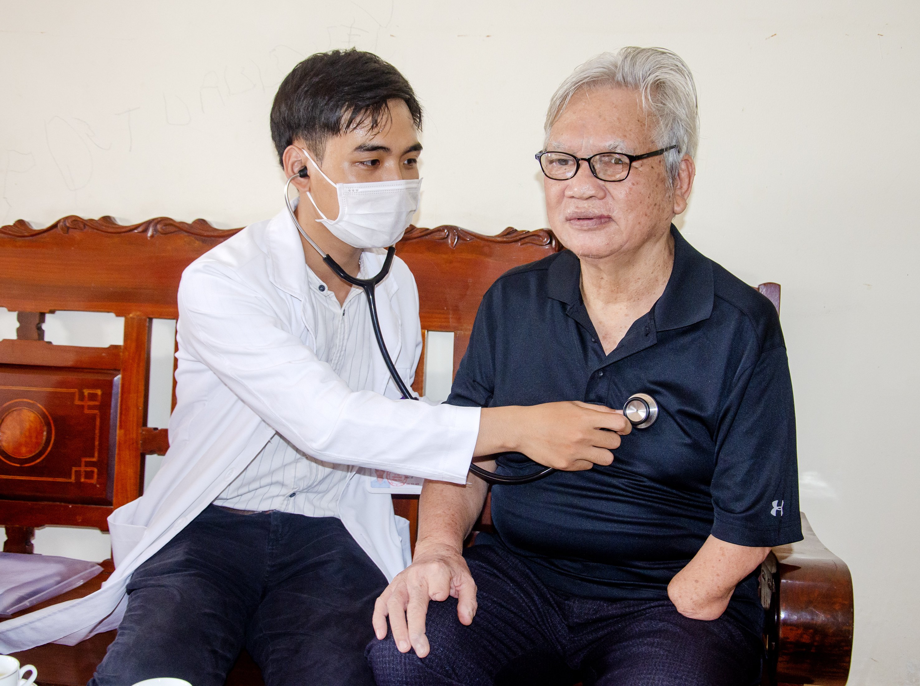 Tại các gia đình, đội ngũ y, bác sĩ, nhân viên y tế Trung tâm y tế TP. Vũng Tàu đã thăm khám, kê đơn thuốc bổ, thuốc điều trị cho các gia đình chính sách về những bệnh lý mãn tính như huyết áp, xương khớp, tiểu đường, các bệnh về mắt, tiêu hóa…