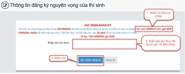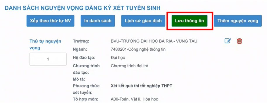 Bước 9: Thí sinh xác nhận đăng ký sau khi chọn Lưu thông tin