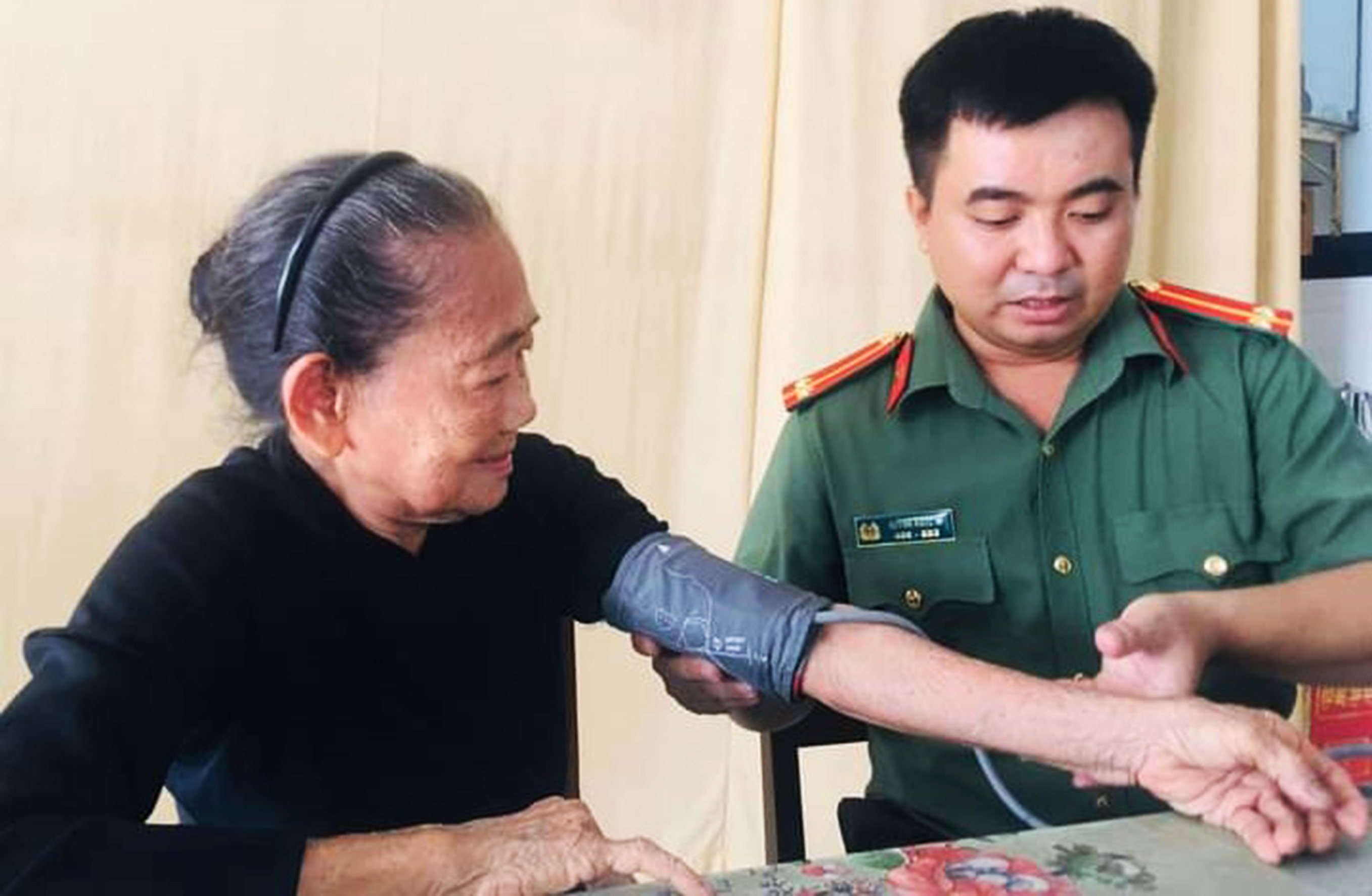 | Lực lượng Công an tỉnh thăm, khám sức khoẻ Mẹ La Thị Biên (xã Nghĩa thành, huyện Châu Đức). |