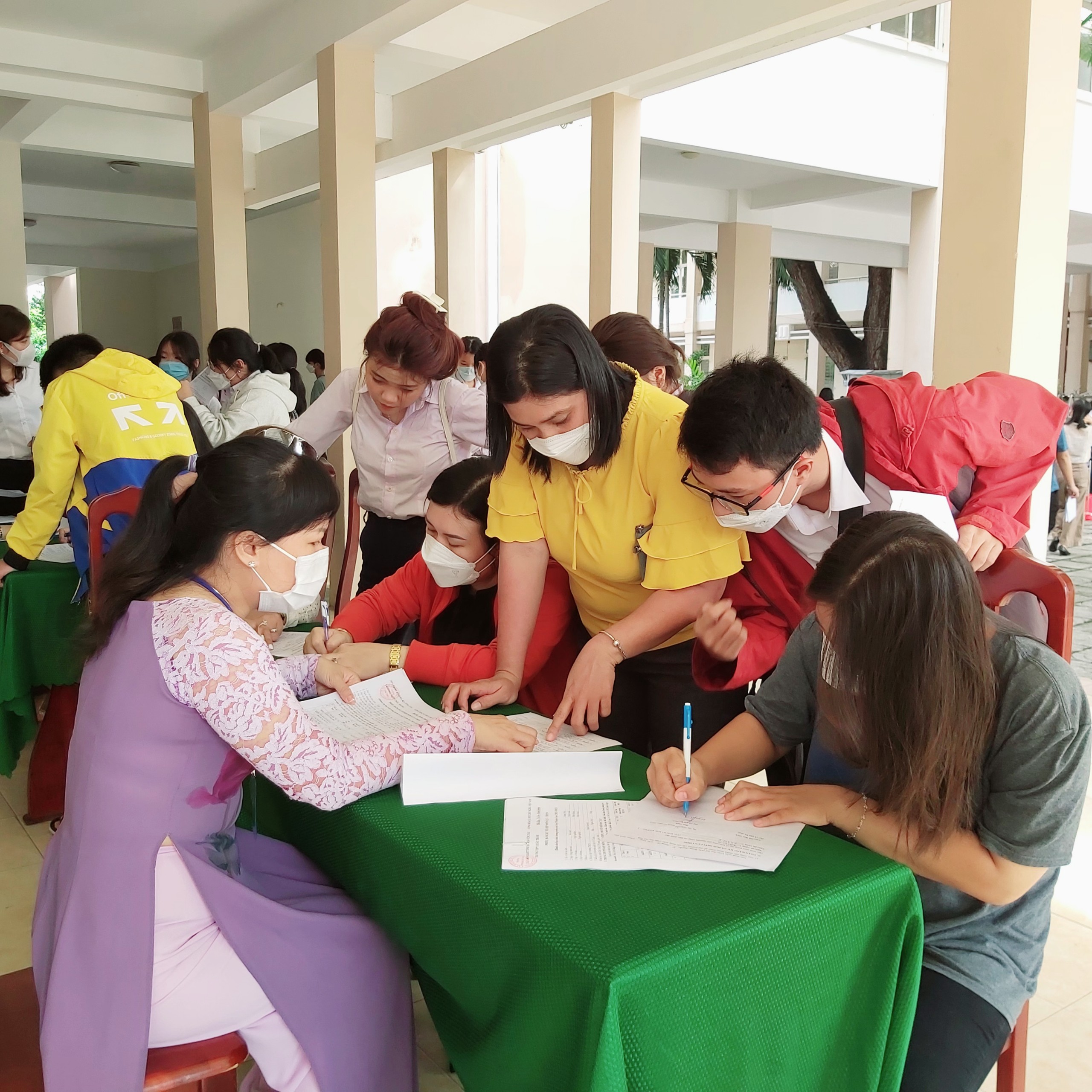 | Giáo viên Trường THPT Châu Thành tư vấn cho học sinh, phụ huynh đăng ký chọn tổ hợp môn học và xét tuyển vào lớp chất lượng cao. |
