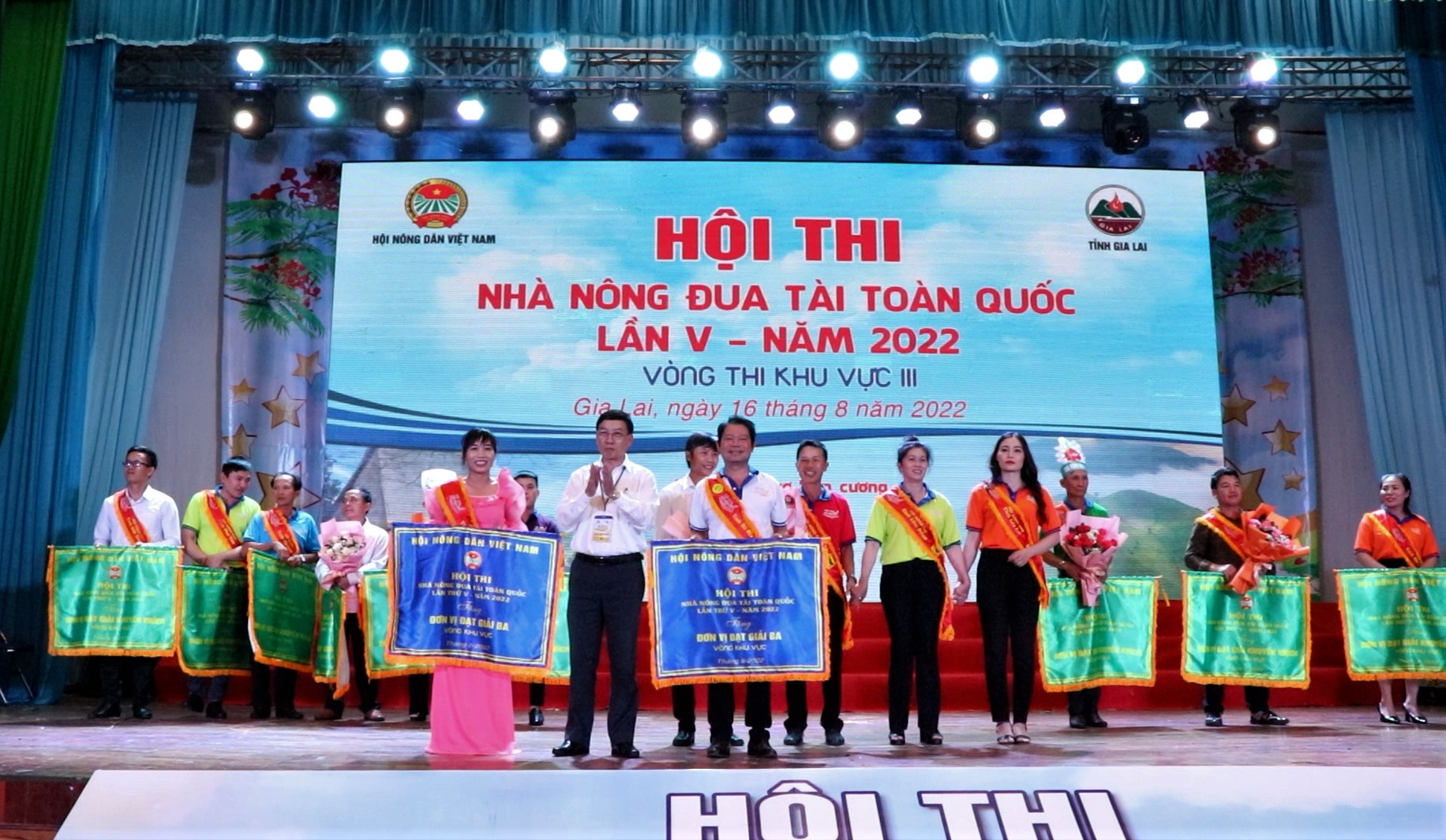 Sau một ngày diễn ra sôi nổi, chiều tối 16/8, Hội thi Nhà nông đua tài toàn quốc lần thứ V năm 2022, khu vực III tại Gia Lai đã kết thúc thành công tốt đẹp. Kết quả, Ban tổ chức đã trao giải Nhất cho đội Hội Nông dân tỉnh Quảng Nam (bảng E) và đội Hội Nông dân tỉnh Lâm Đồng (bảng F).