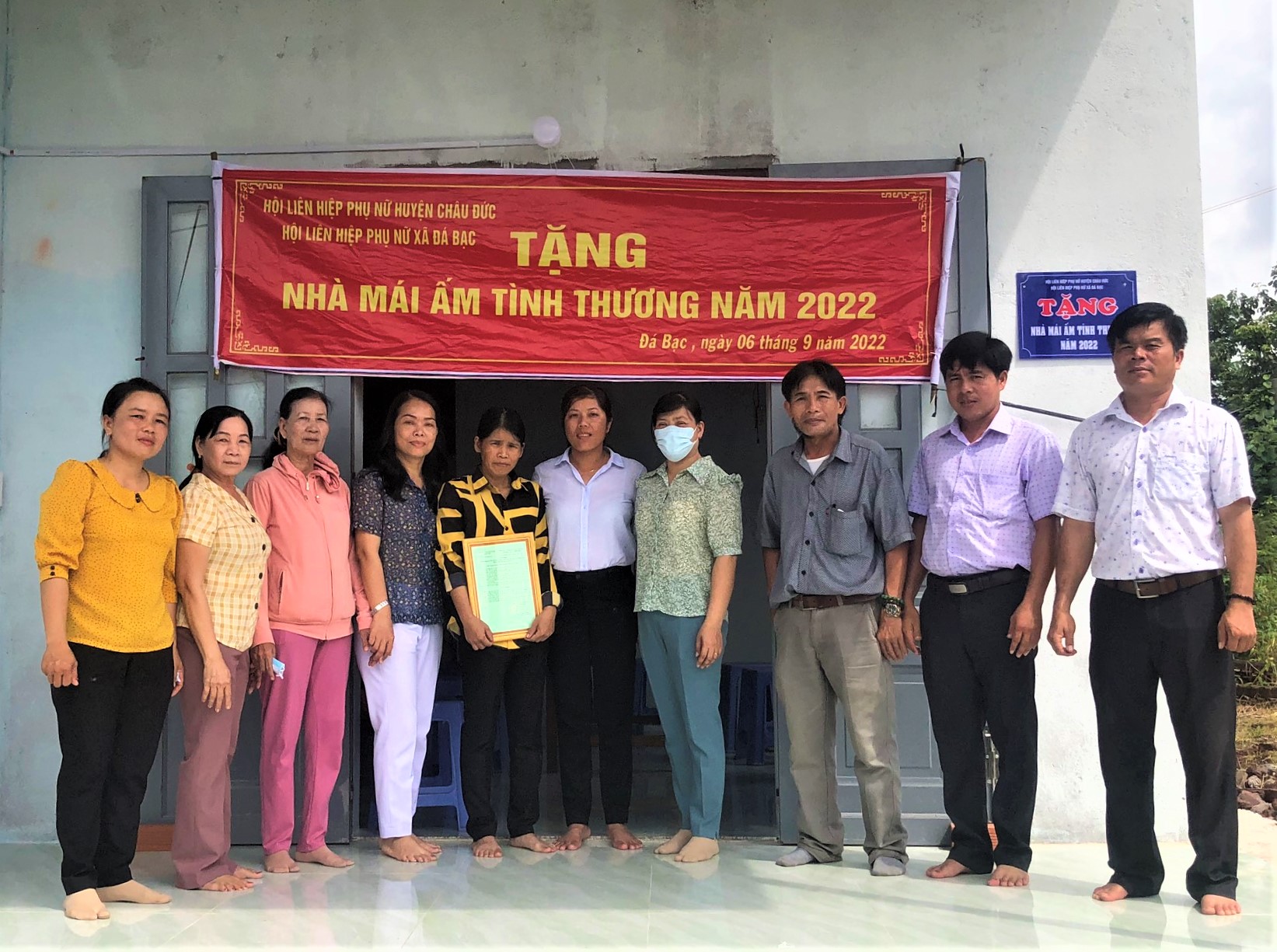 | Đại diện Hội LHPN xã Đá Bạc (huyện Châu Đức) cùng đoàn thể xã, Chi hội phụ nữ thôn, nhà hảo tâm tại lễ bàn giao “Mái ấm tình thương” cho gia đình chị Lê Thị Thanh Thúy. |