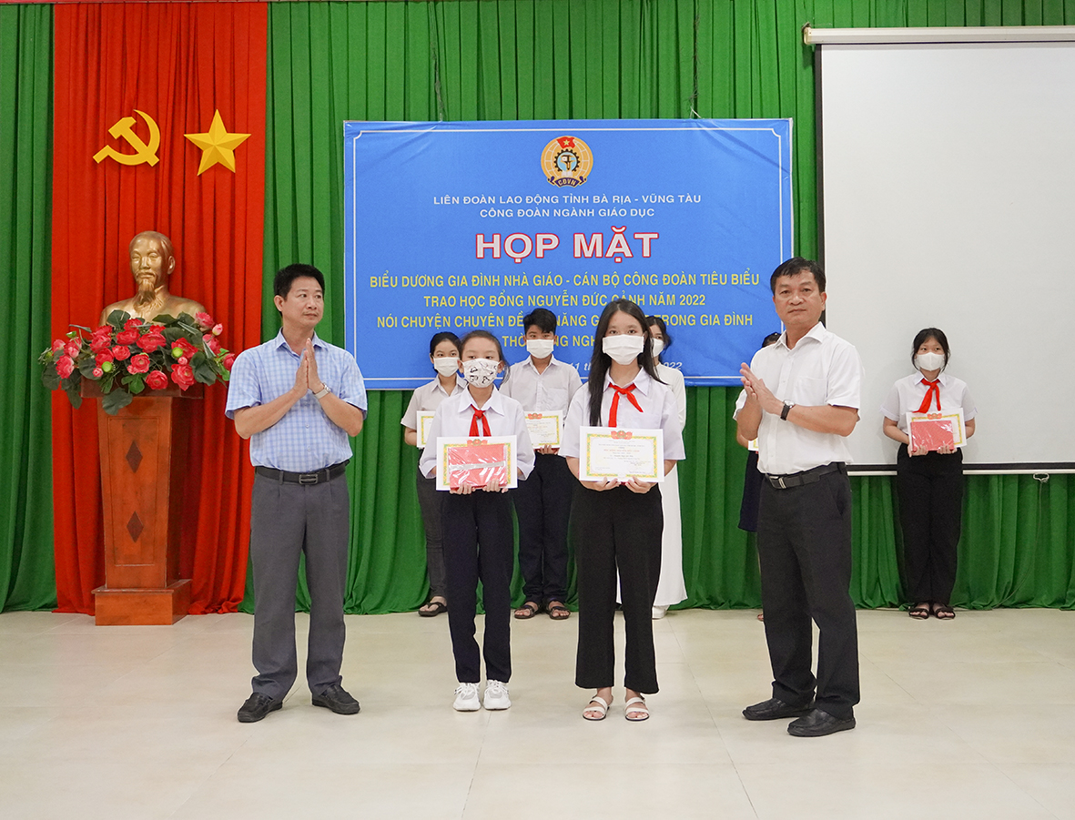 Sáng 11/9, tại Trường THPT Bà Rịa (TP. Bà Rịa), Công đoàn ngành Giáo dục tỉnh tổ chức buổi họp mặt, biểu dương 32 gia đình nhà giáo, cán bộ công đoàn tiêu biểu năm học 2021 - 2022.